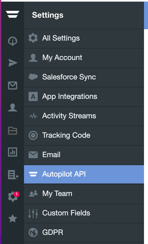 - Within Autopilot Journeys, visit Settings then Autopilot API page.
