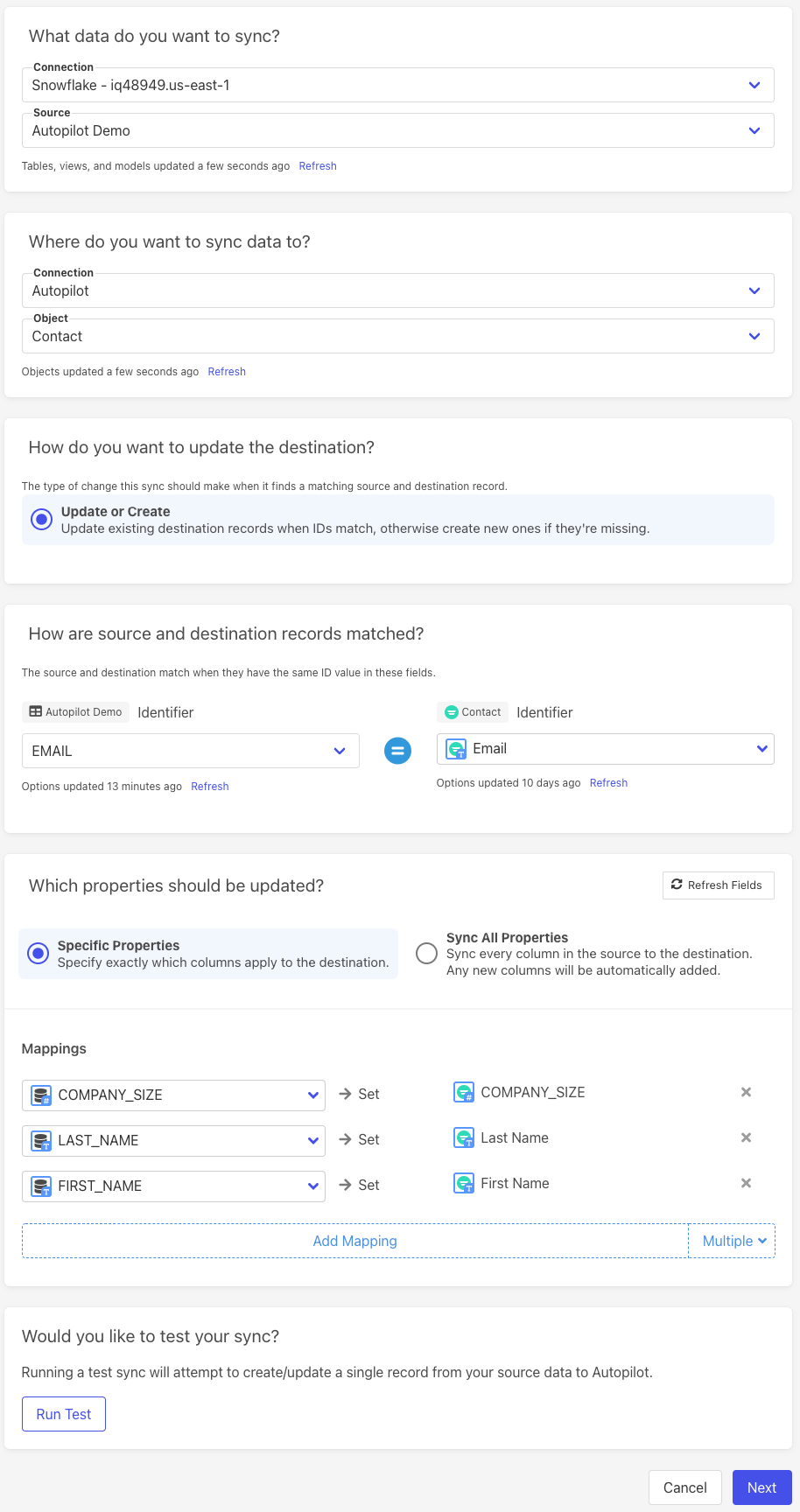 That's it! In 6 steps, you connected Activations to Autopilot and started syncing customer & account data from your warehouse to Autopilot π