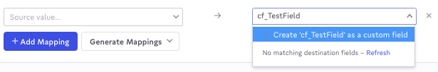 Custom fields defined in Chargebee can be added to the sync mapping by manually entering the custom field API Name in the destination field mapping.