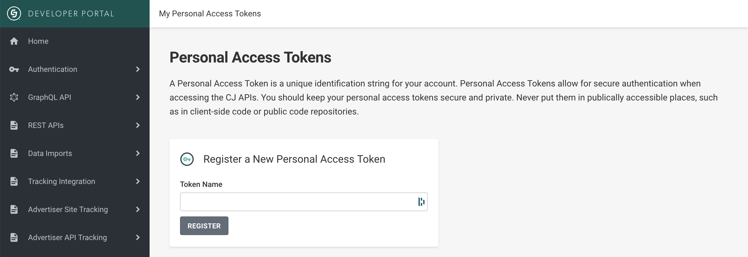 Generate a Personal Access Token in CJ's developer portal.