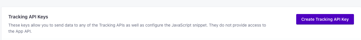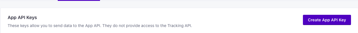 It's important to note that there are two types of API keys here: Track API Keys and App API Keys. Track API Keys are used to send behavioral tracking activity. App API Keys are used for triggering messages and broadcasts, as well as retrieving data from your workspace. For a more in-depth explanation, check out Customer.io's docs here. \