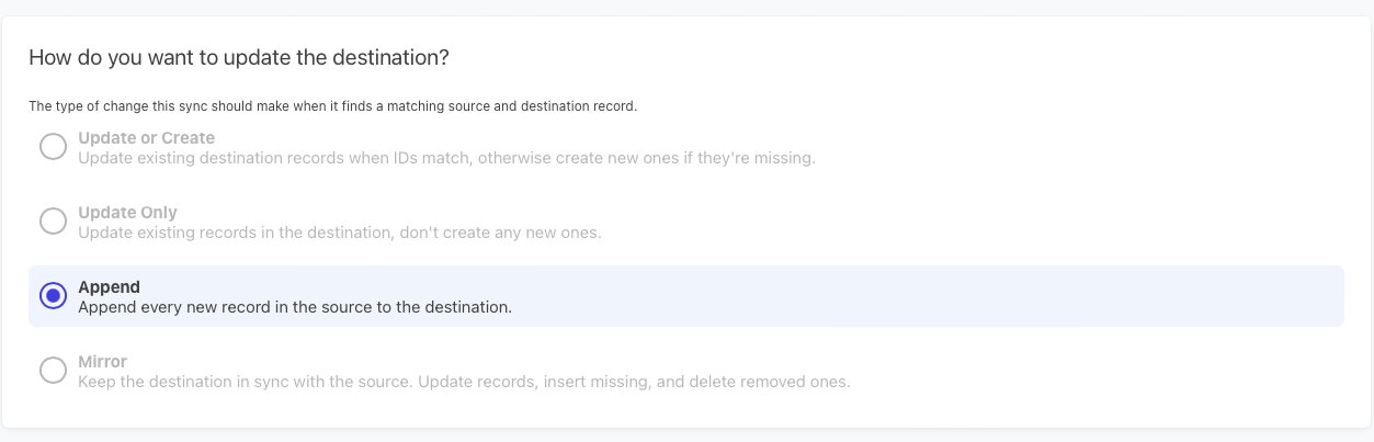 Learn more about all of our sync behaviors in our Syncs documentation.