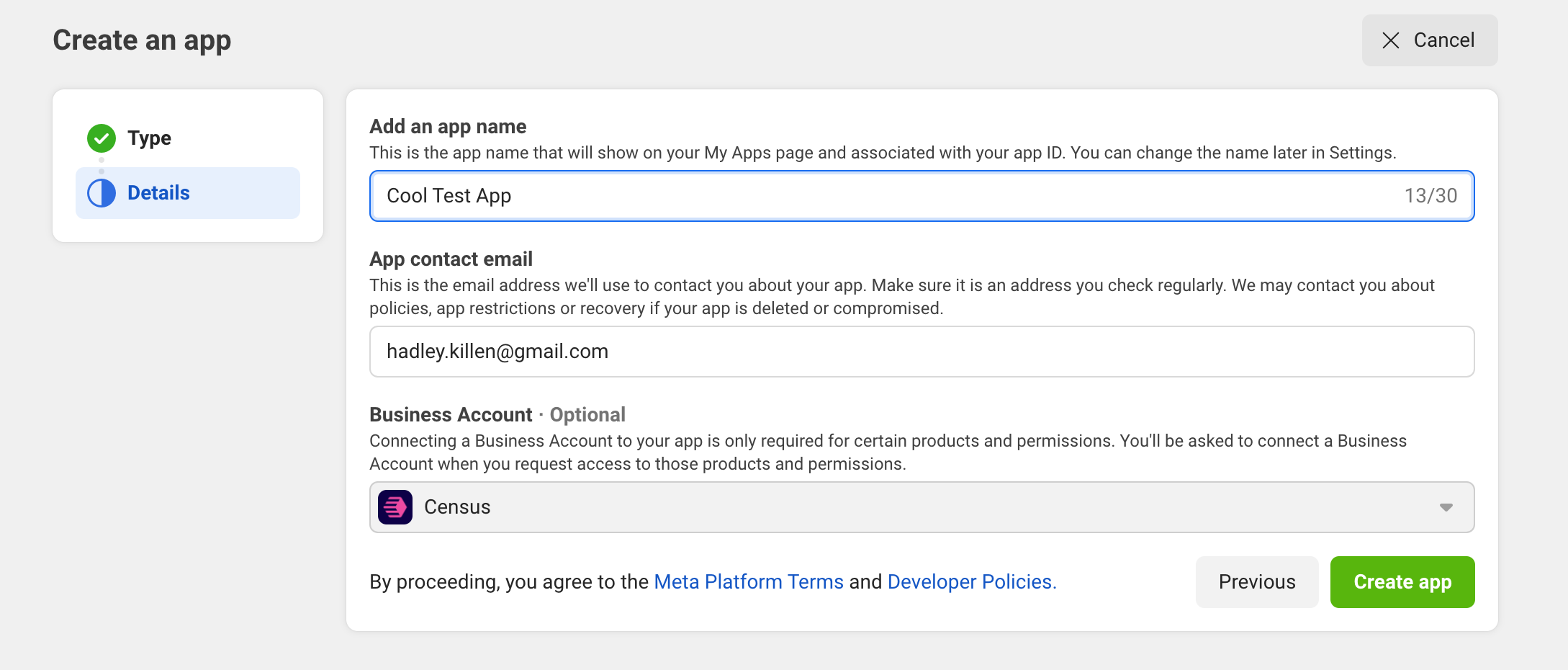 - Then fill out the relevant details and press Create App