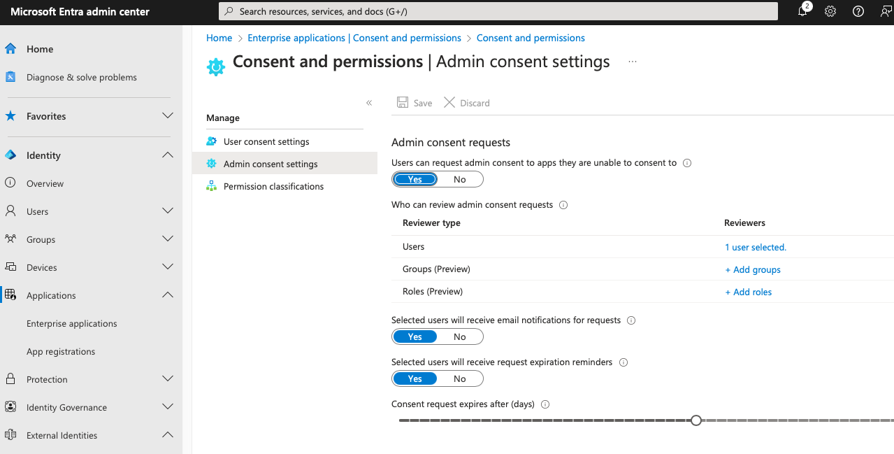 [ADMIN] Find the approval request in Entra. Approval requests can be found after navigating to Enterprise applications > Admin consent requests.
