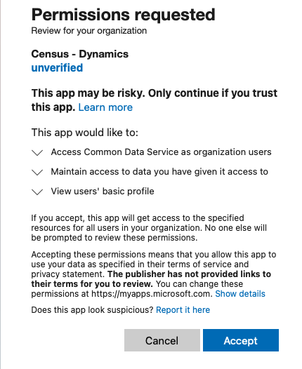 [USER] Add Microsoft Dynamics as a destination in Activations and go through the OAuth flow. At the end, you will be prompted to enter a justification and request for access.