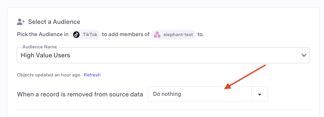 When a record is removed from source dataoption toDo Nothingon sync set up