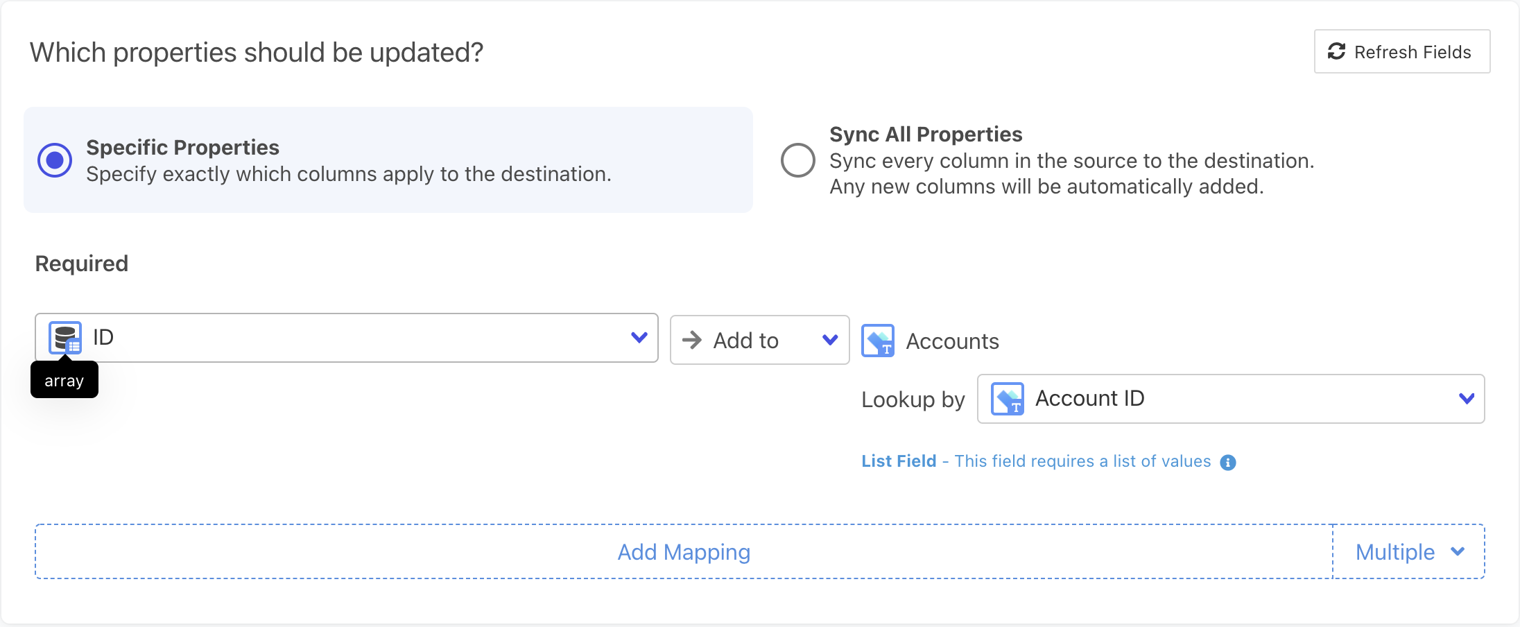 - Required for Update or Create (a.k.a. "Upsert") and Send syncs