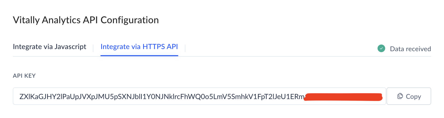 Copy your Analytics API Key from Vitally.