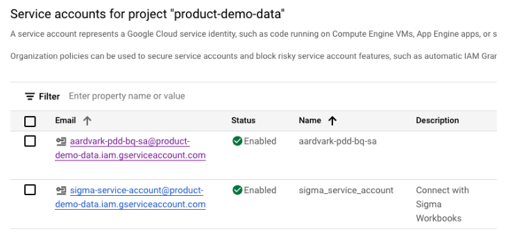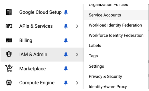 Log into Google Cloud Console and navigate to IAM & Admin -> Service Accounts