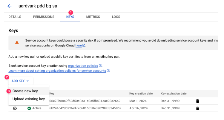 2. Generate a Service Account Key