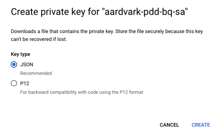 Choose the key type "JSON" and click Create