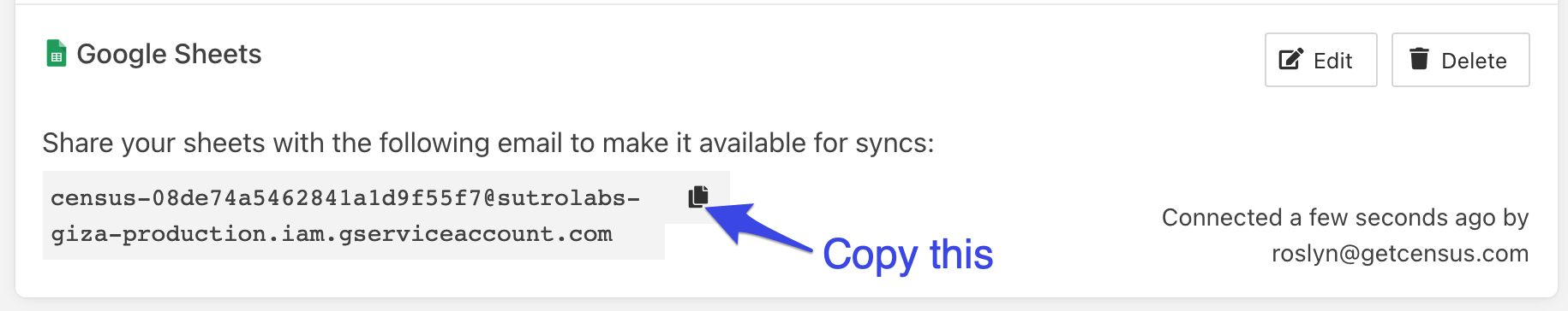 We will now use this service account email to "share" the Google sheet you want to connect to Activations.