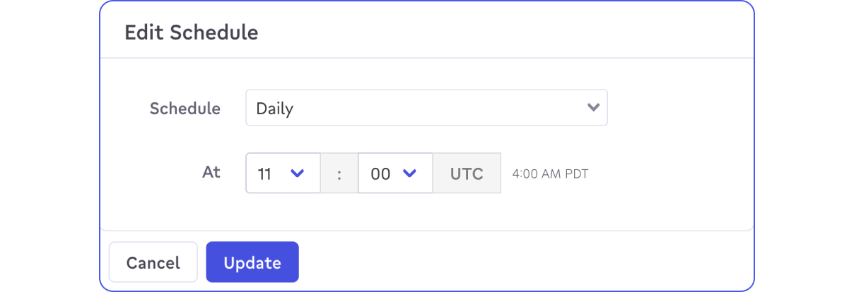 Schedules let you specify a time and frequency that Activations can use to run your sync automatically. You can choose options from weekly all the way to Continuous, which means Activations checks your source roughly every minute for new changes.