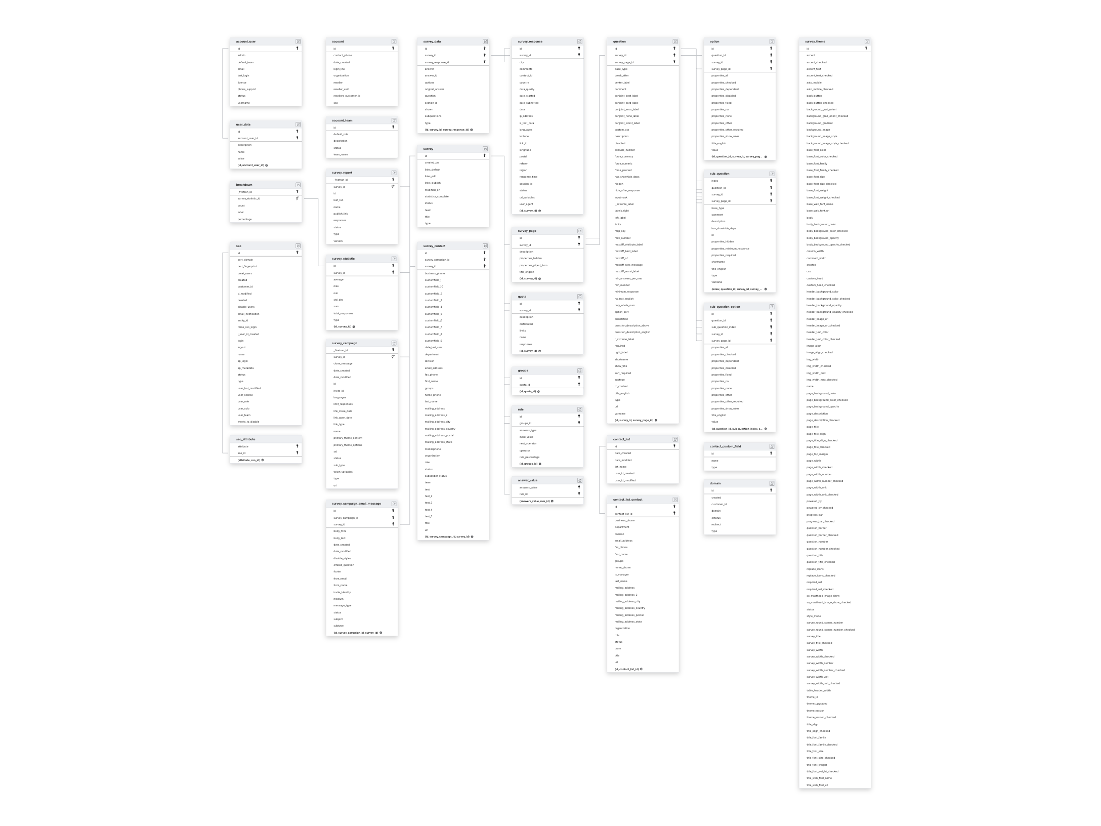 ACCOUNTACCOUNT_TEAMACCOUNT_USERCONTACT_LISTDOMAINSSOSURVEY_CUSTOM_FIELDSURVEY_THEMEUSER_DATA