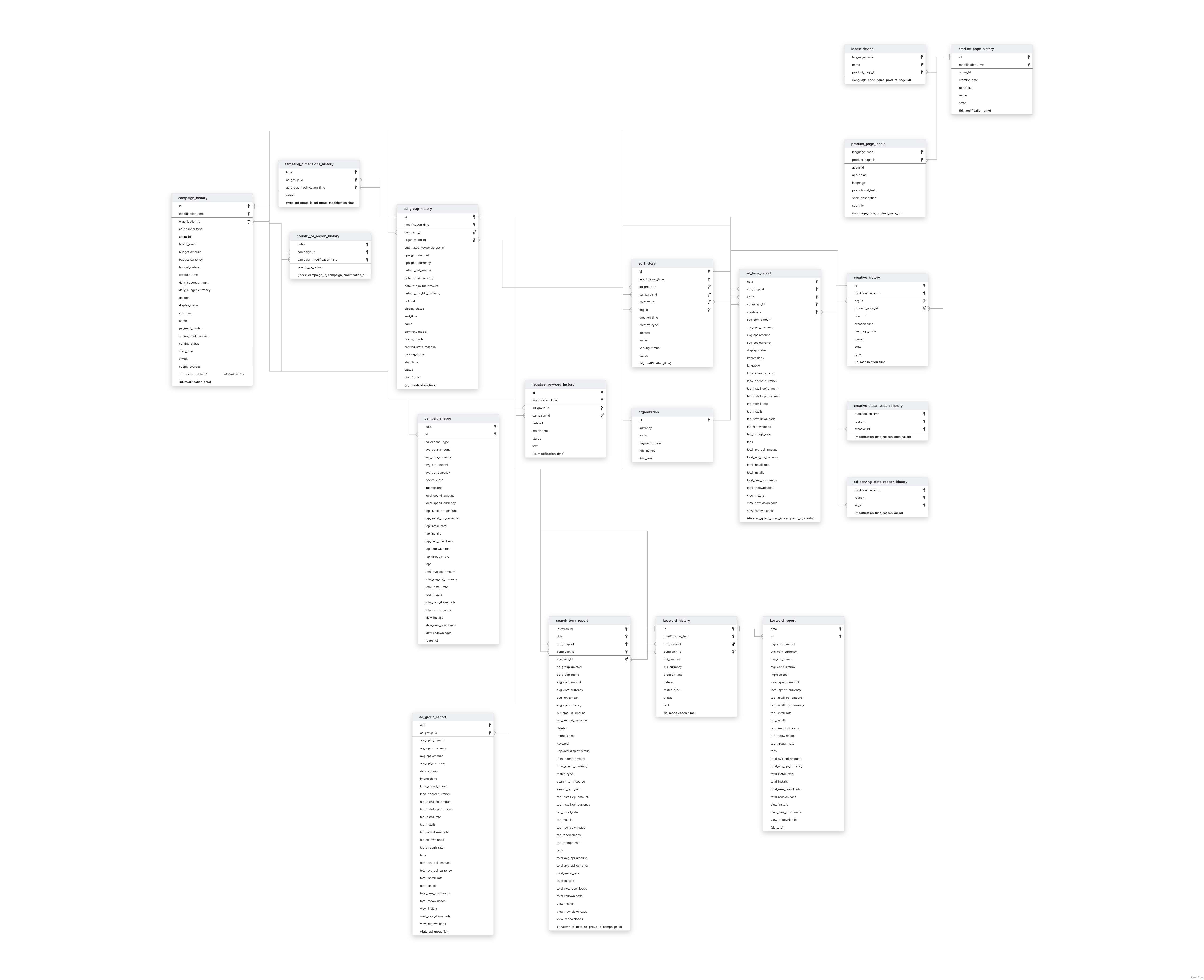 This schema applies to all Apple Search Ads connections.