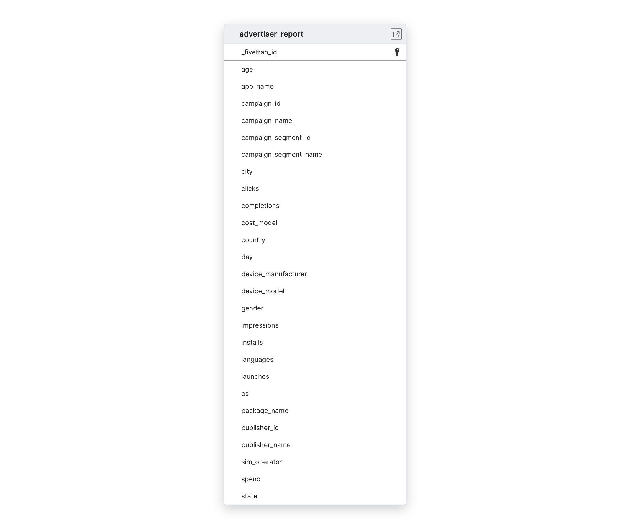 To capture new records, we incrementally sync the ADVERTISER_REPORT table.