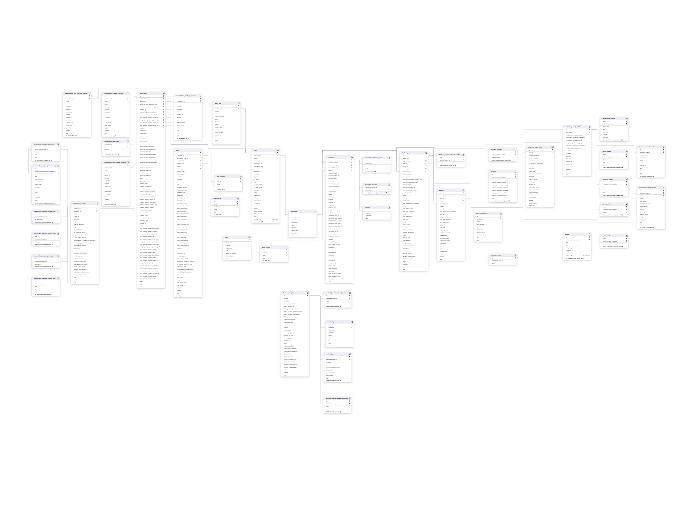 CALIBRATION_CYCLECALIBRATION_CYCLE_TEMPLATECALIBRATION_TALENT_RECORDCONVERSATION_TEMPLATEDEPARTMENTFEEDBACK_TEMPLATEGOALREPORT_RUN