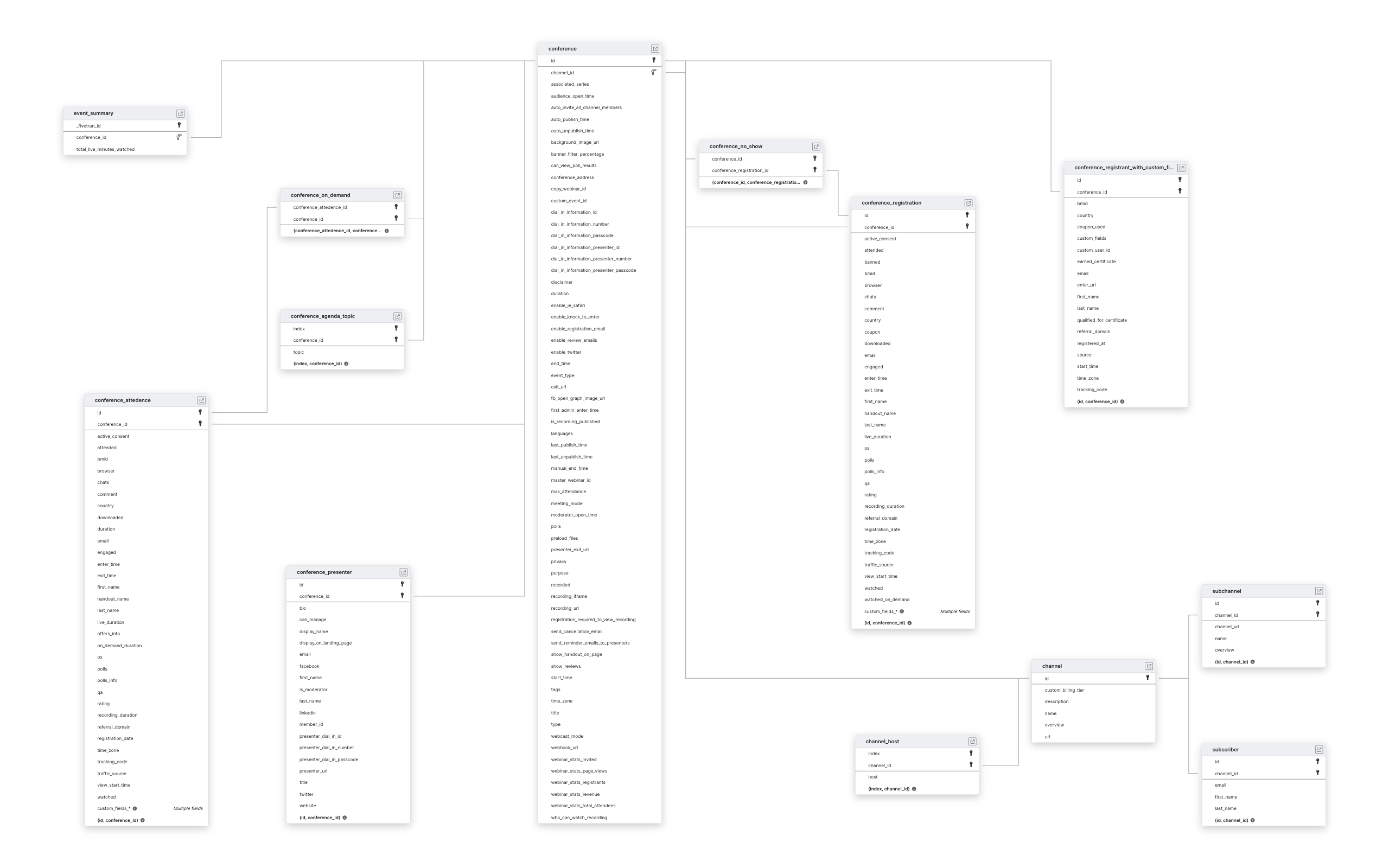 To capture new and updated records, we incrementally sync the CONFERENCE_REGISTRANT_WITH_CUSTOM_FIELD table.