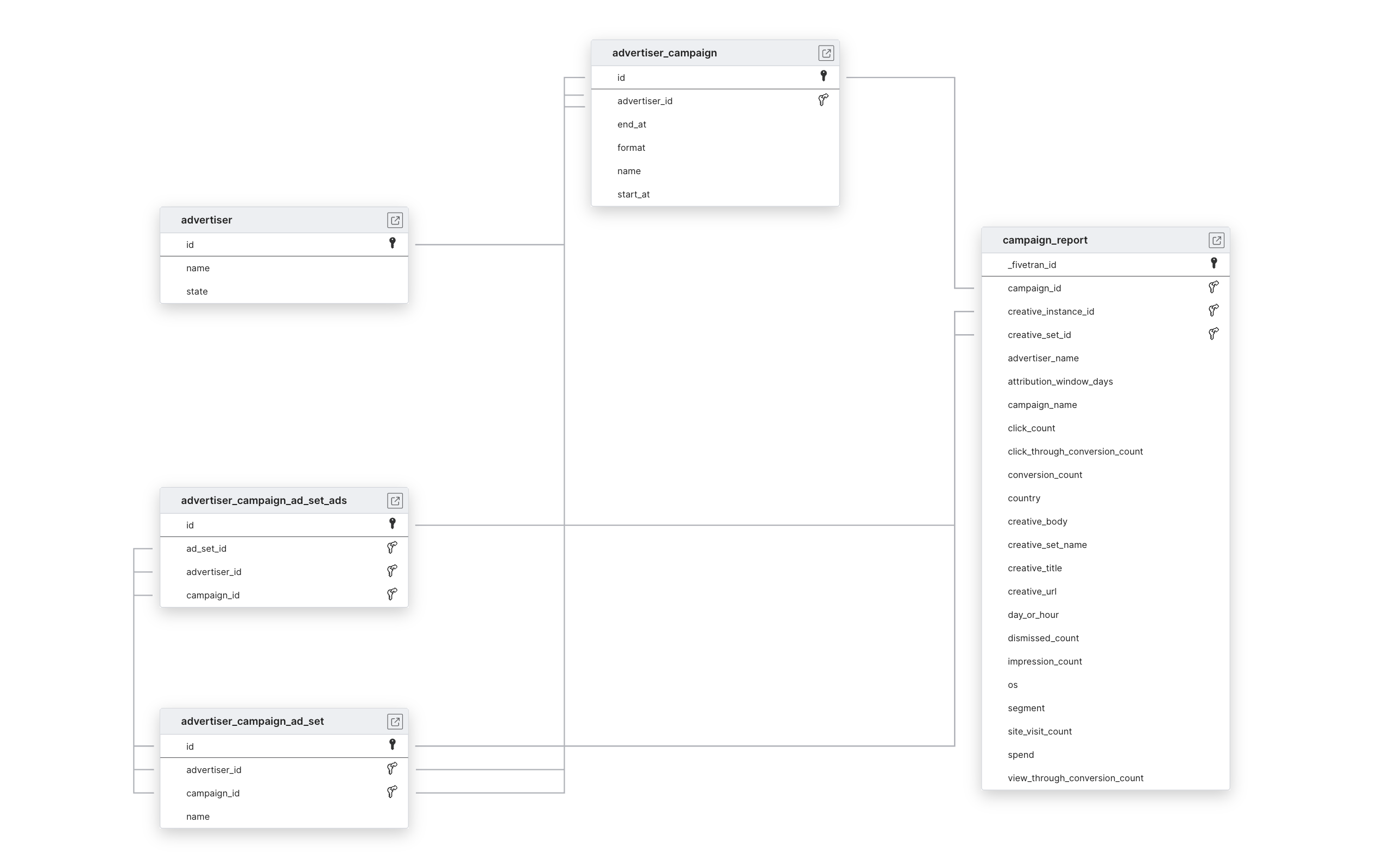 To capture new records, we incrementally sync the CAMPAIGN_REPORT table.