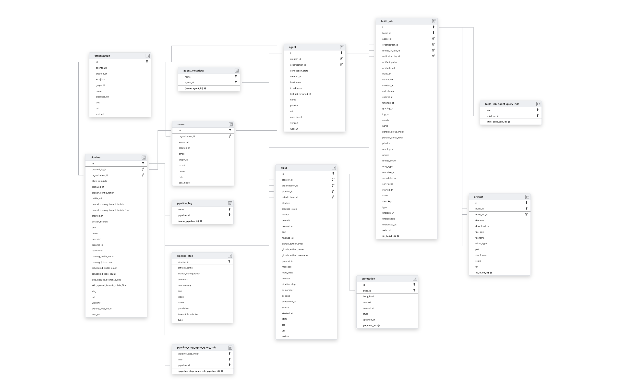 Explore Buildkite schema ERD