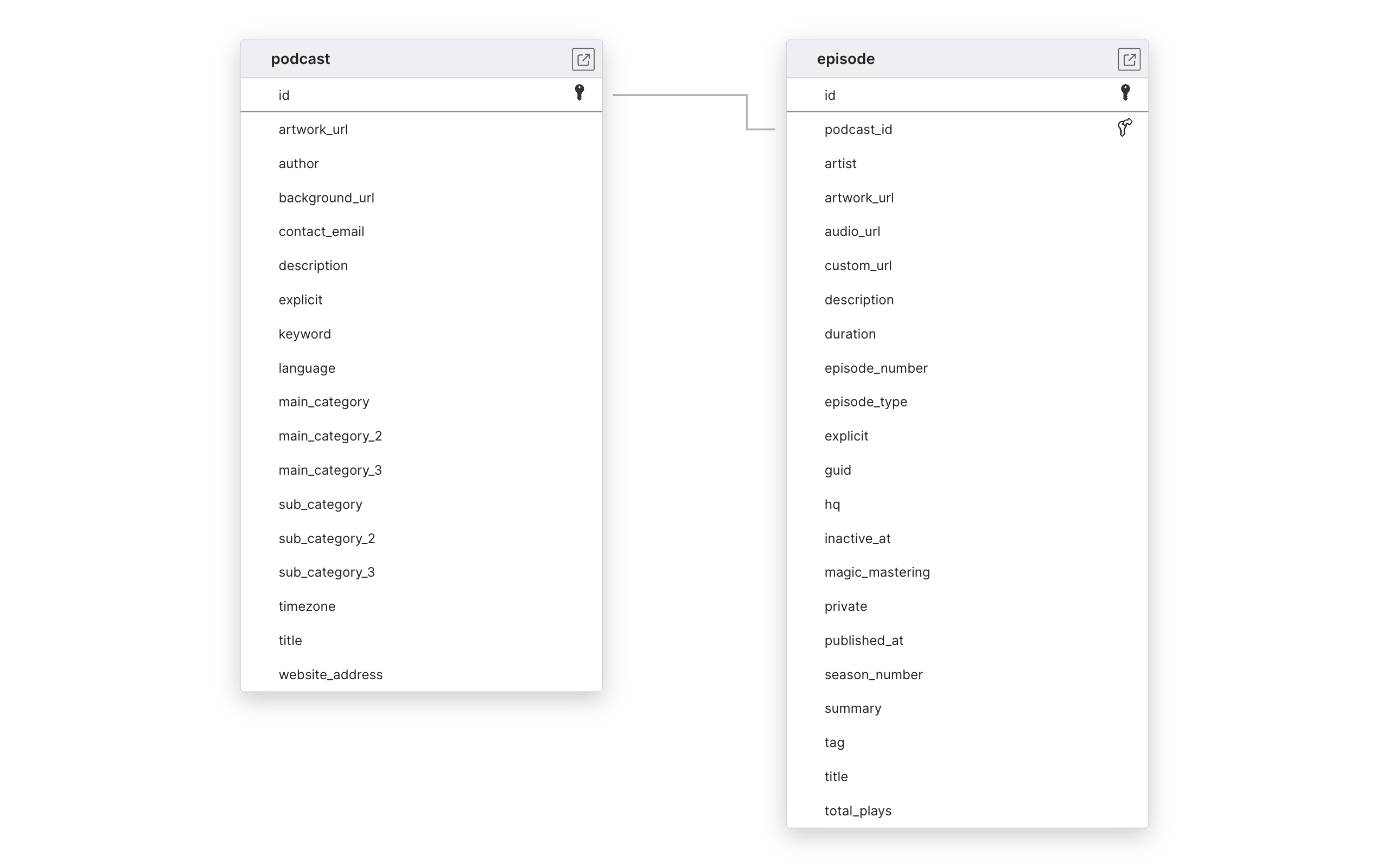 We also re-import the PODCAST and its child table to capture updates and deletes.