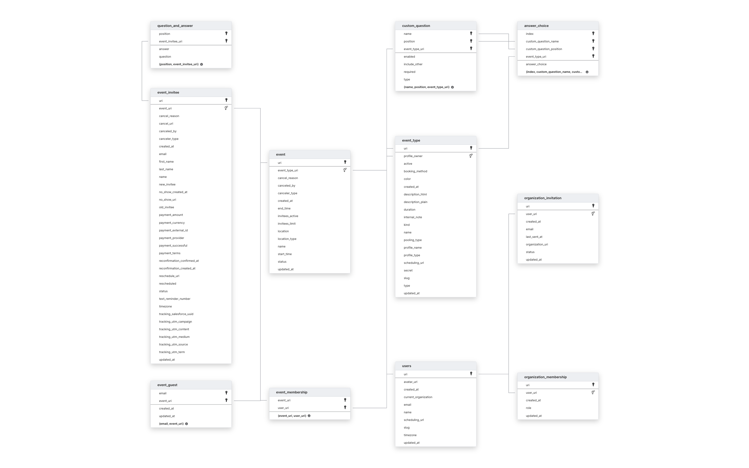 This schema applies to all Calendly connections.