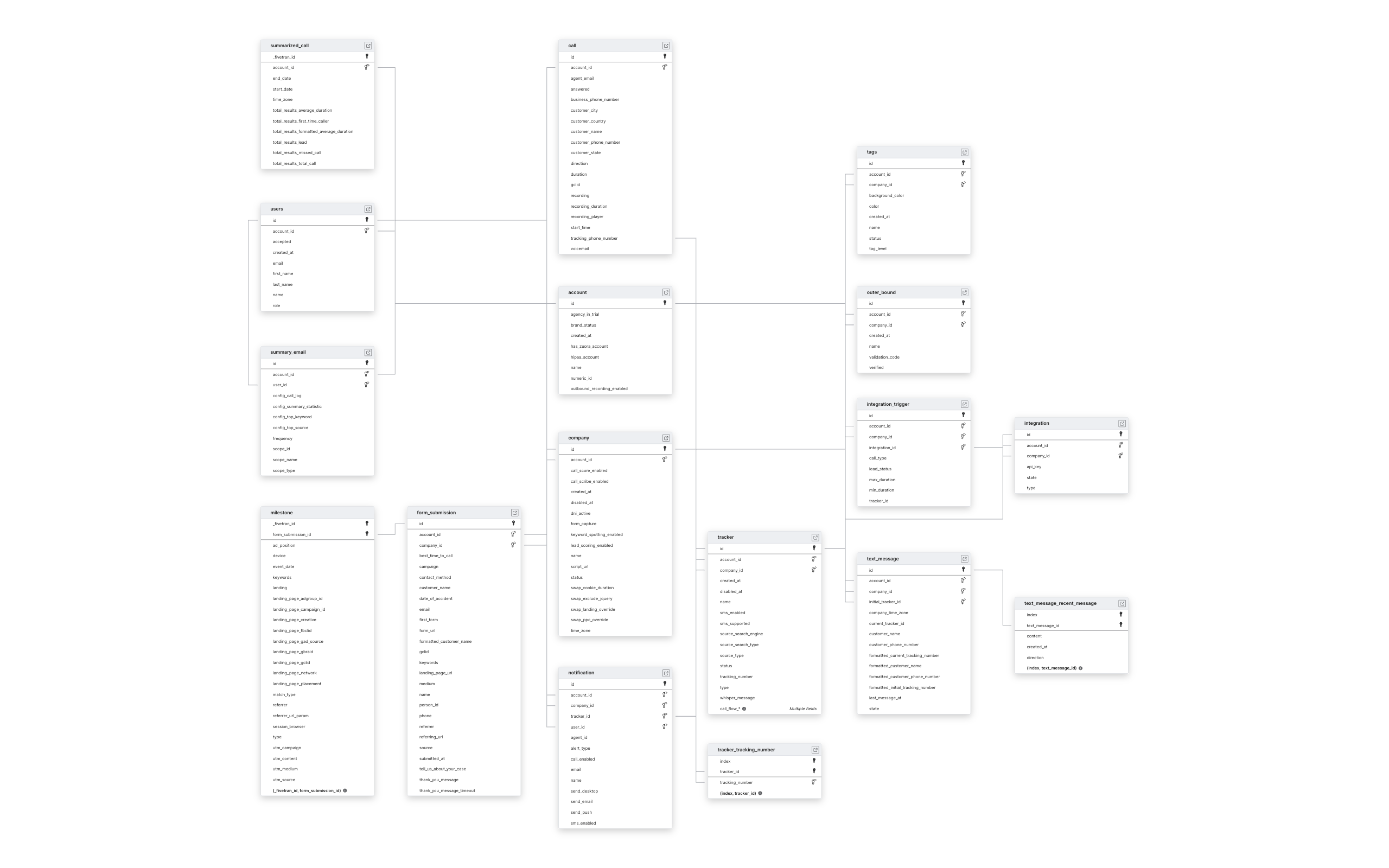 To capture new records, we incrementally sync the CALL and SUMMARIZED_CALL tables and their child tables.