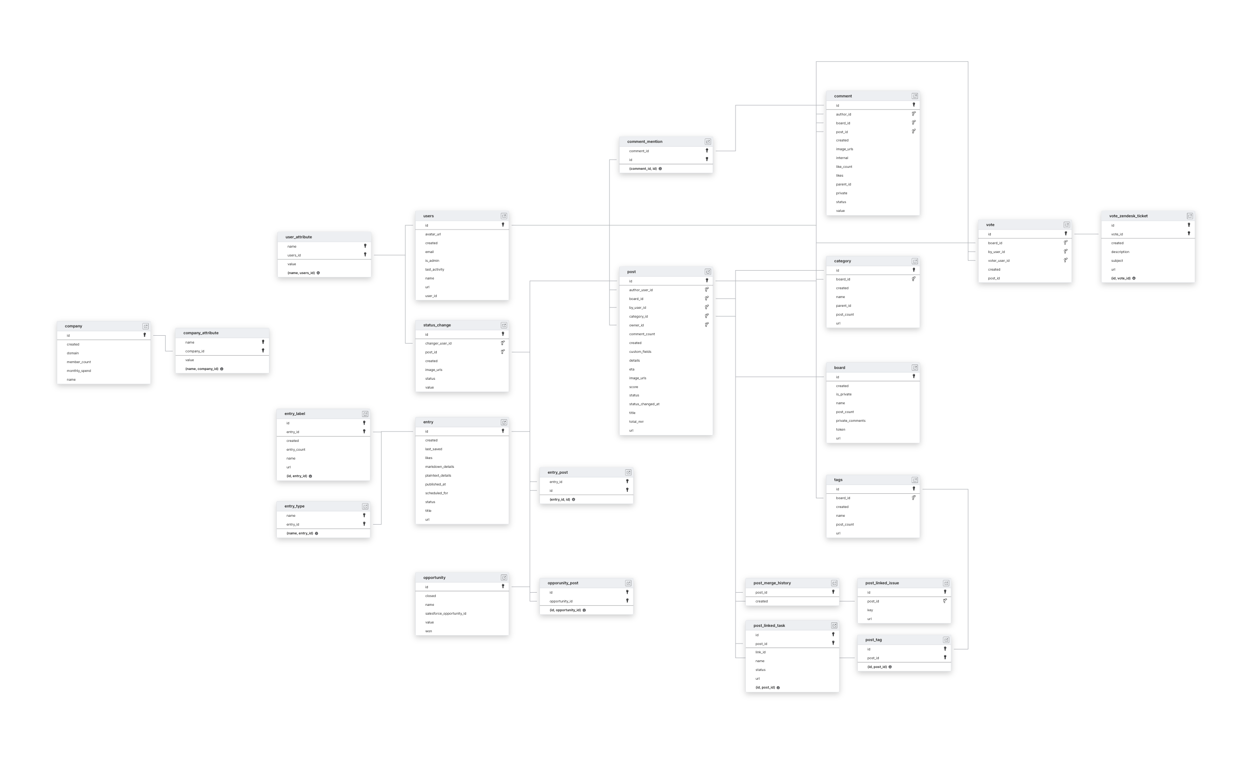 | Custom data | check | COMPANY_ATTRIBUTE, POST_ATTRIBUTE, and USER_ATTRIBUTE tables. |