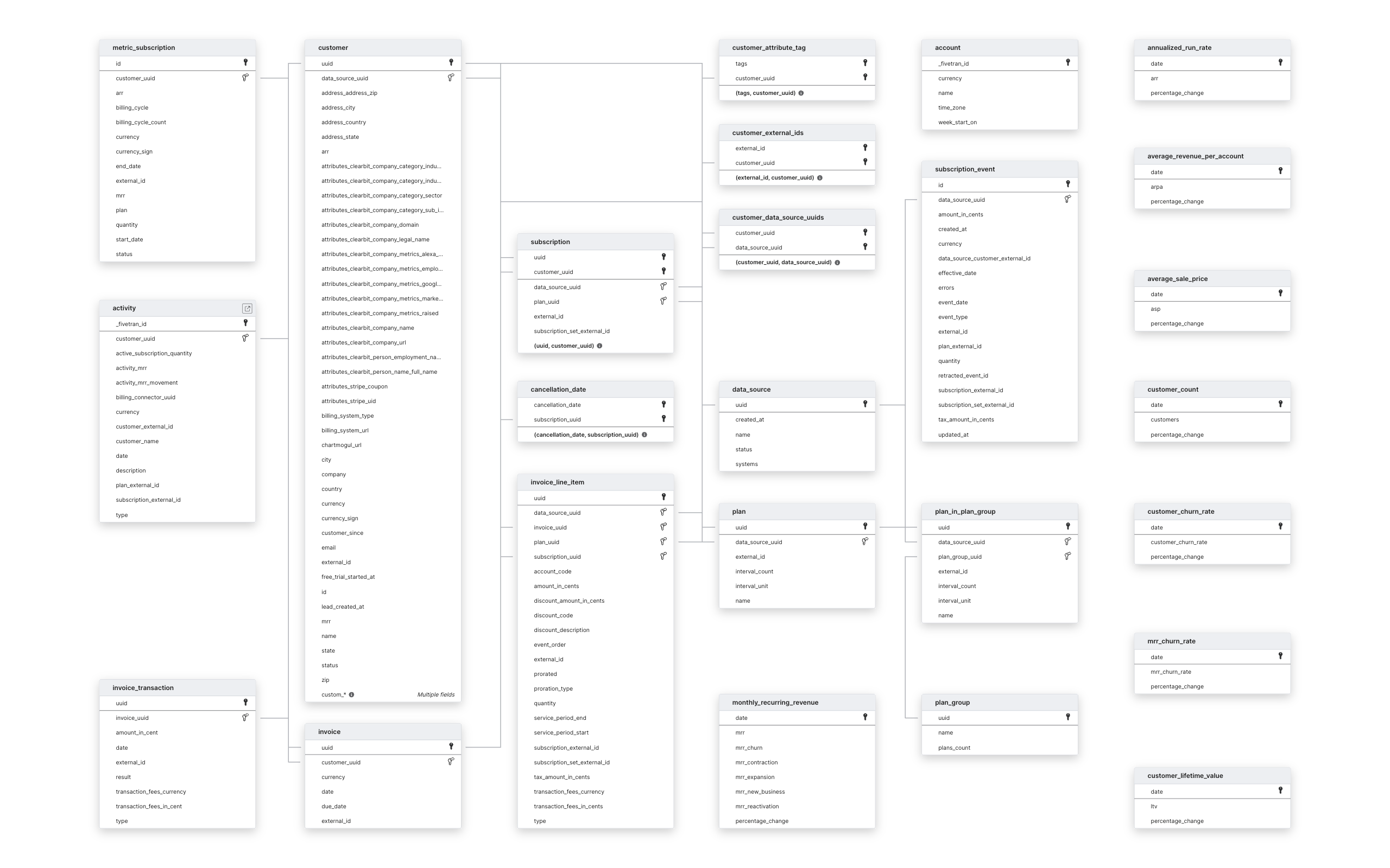 Explore ChartMogul schema ERD