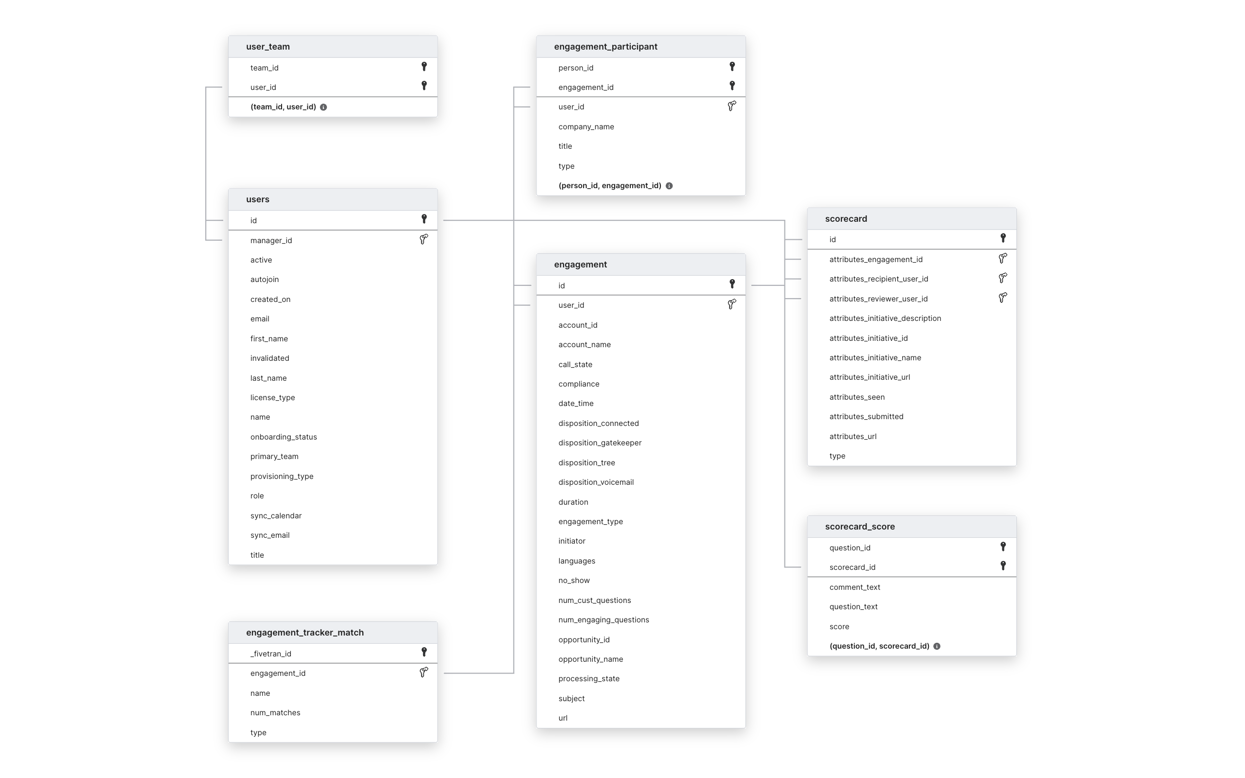 We also re-import the ENGAGEMENT table and its child tables once a week to capture updates and deletes.