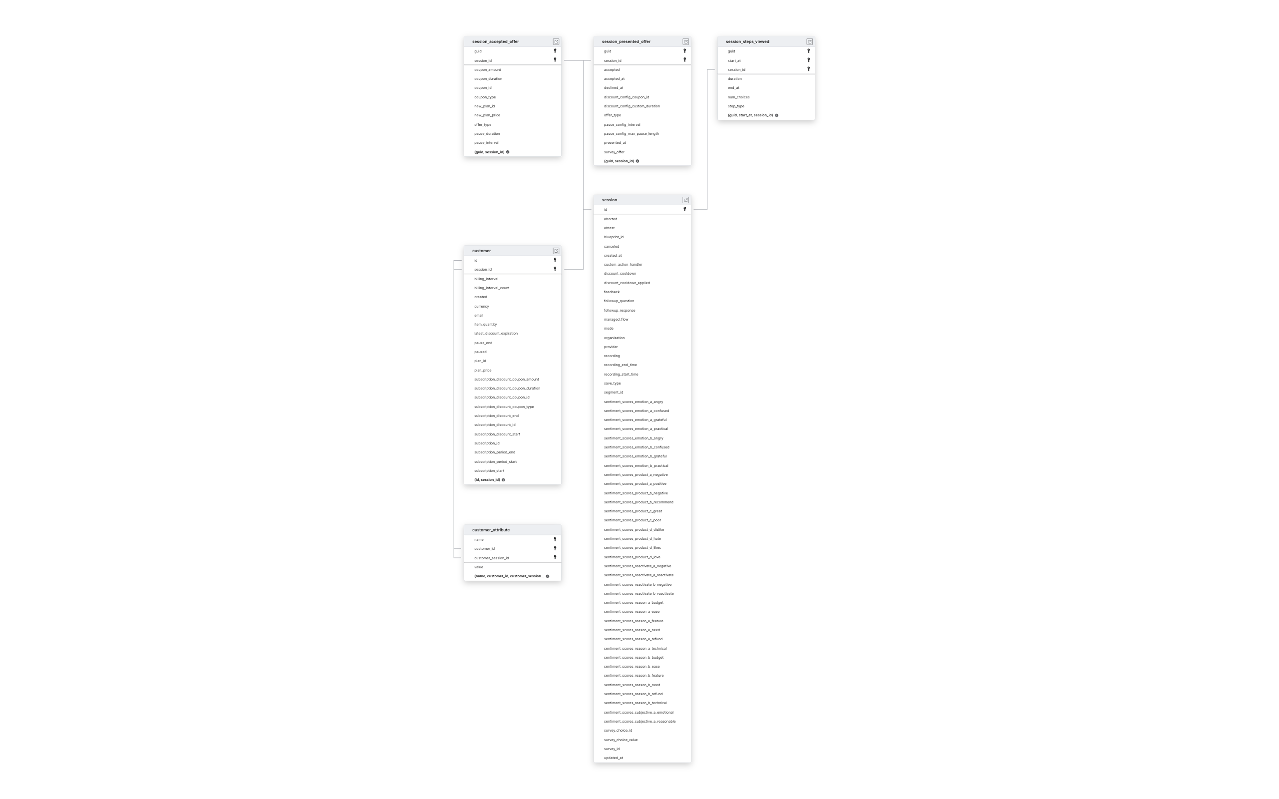 To capture new records, we incrementally sync the SESSION table and its child tables.