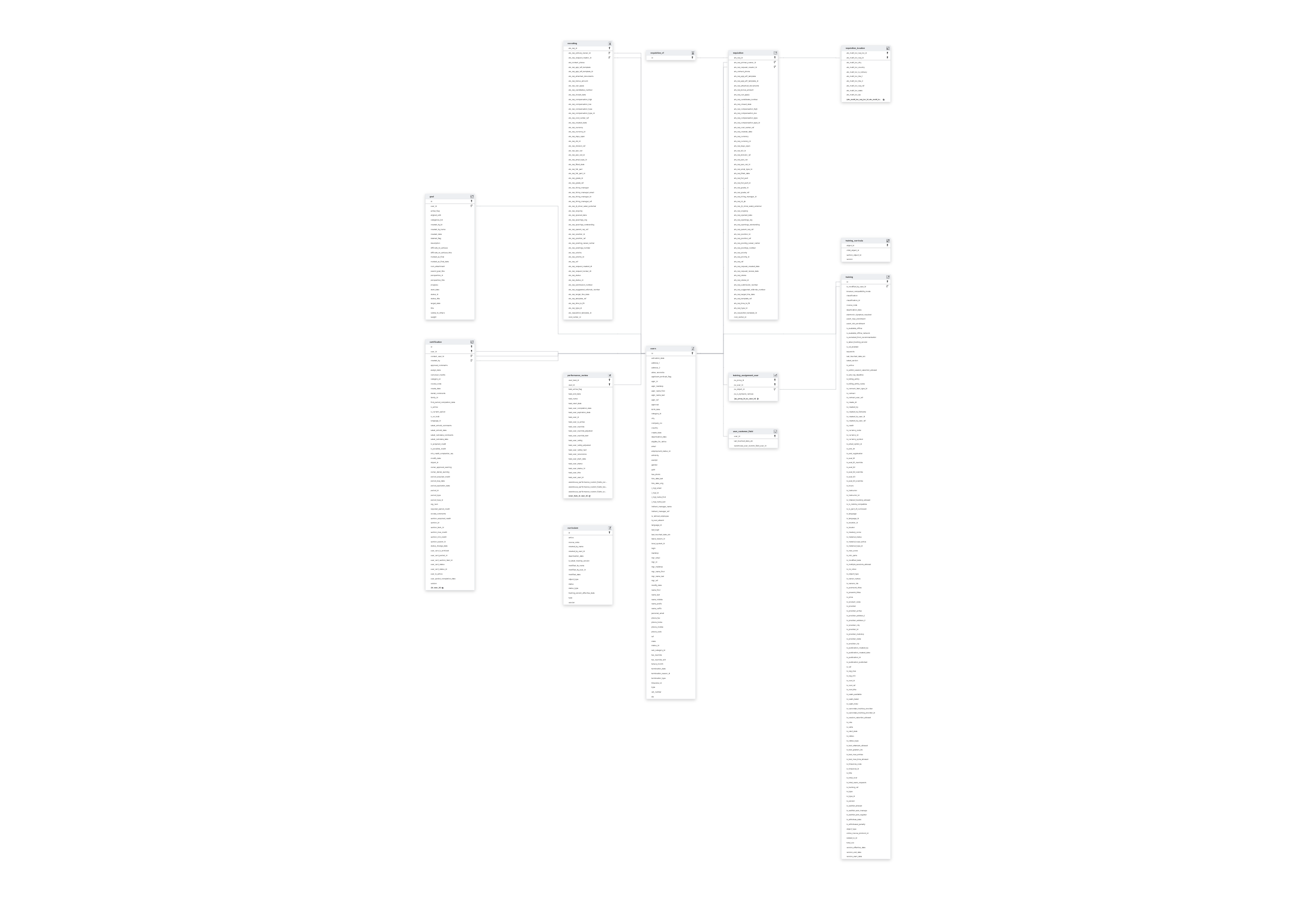 CERTIFICATIONCURRICULUMGOALPERFORMANCE_REVIEWRECRUITINGREQUISITIONTRAININGUSERSUSER_CUSTOMER_FIELD