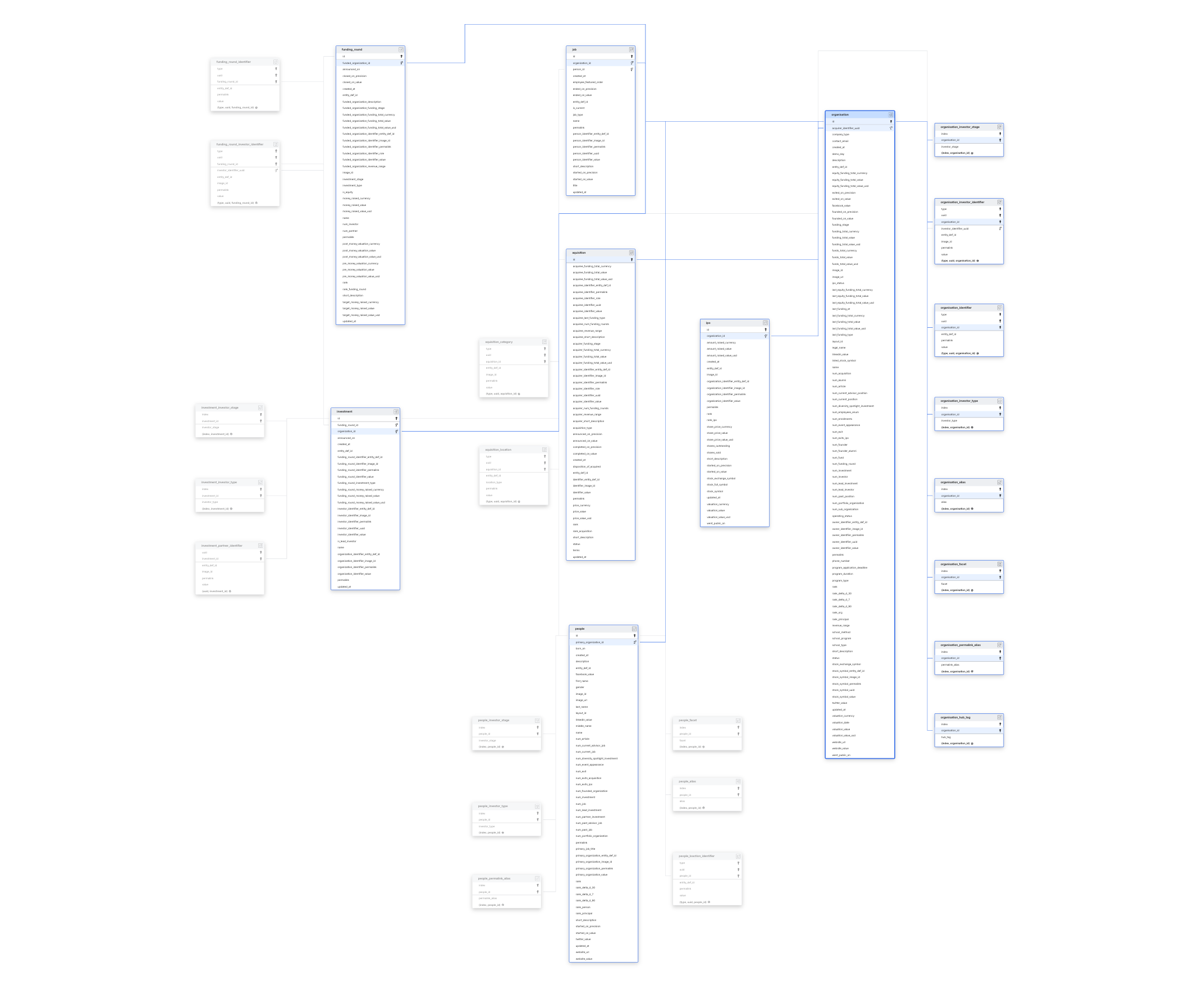 Explore Crunchbase schema ERD