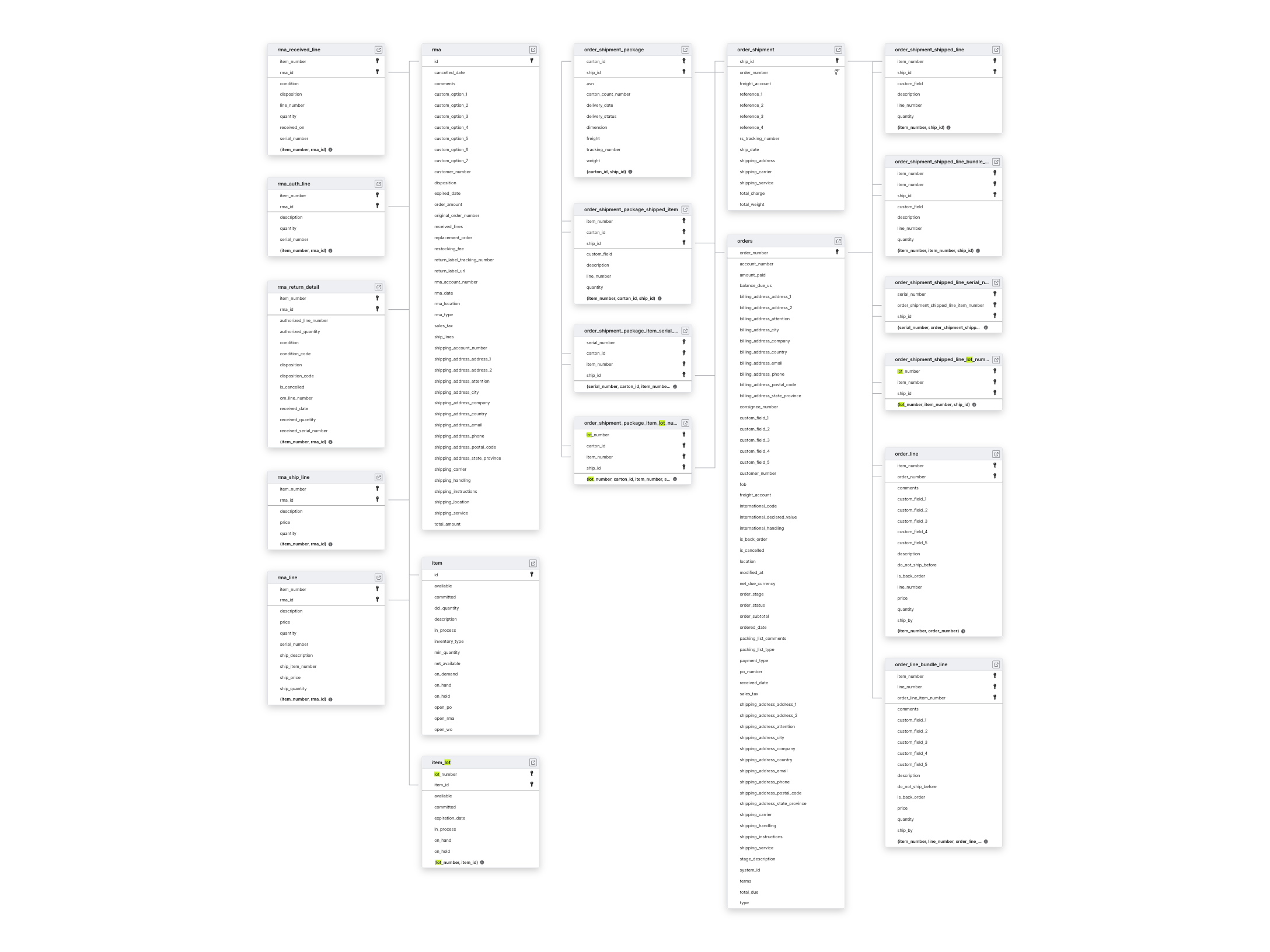 To capture new records, we incrementally sync the ORDERS and RMA tables and their child tables.