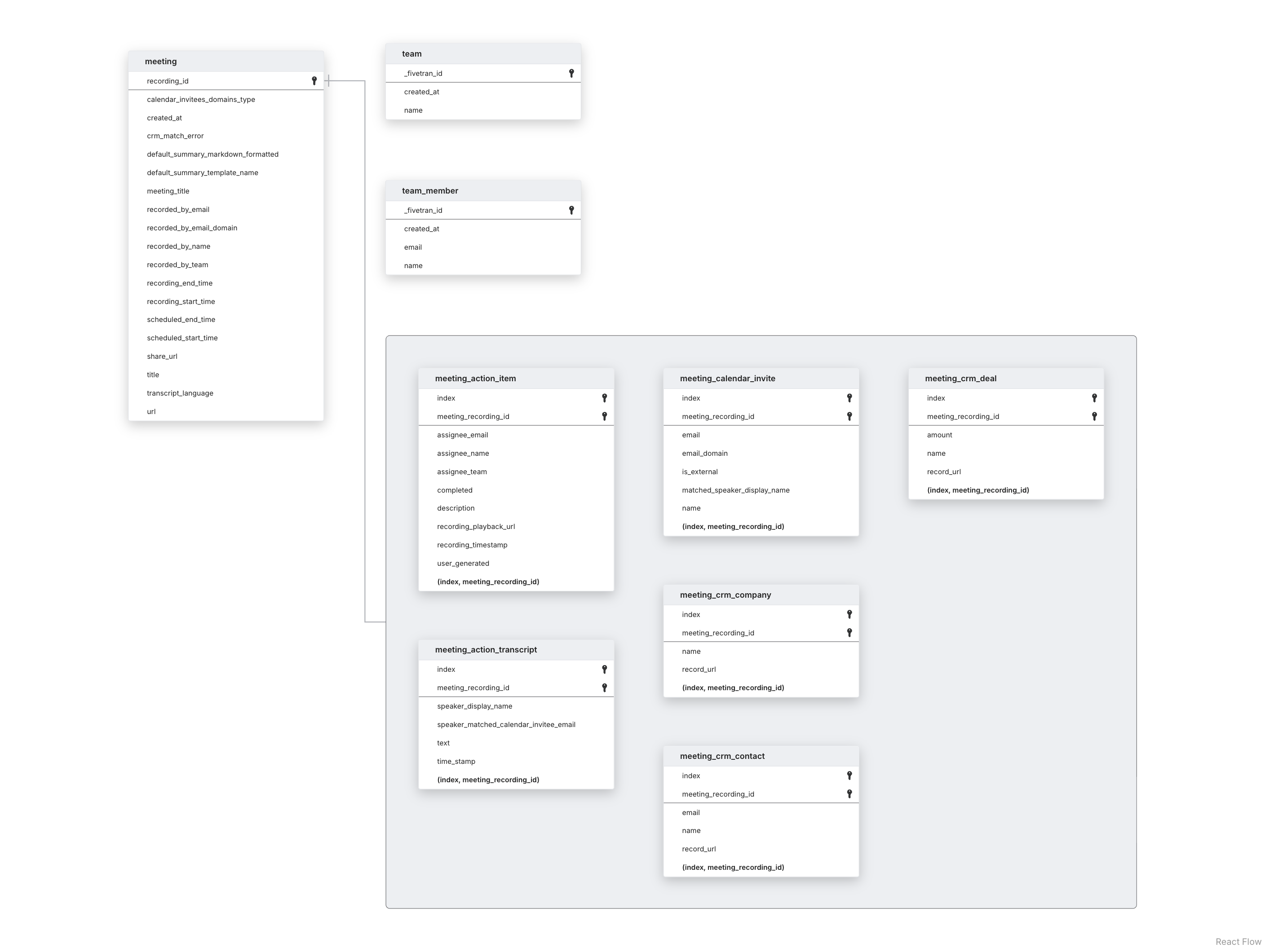 To capture new records, we incrementally sync the MEETING table and its child tables.