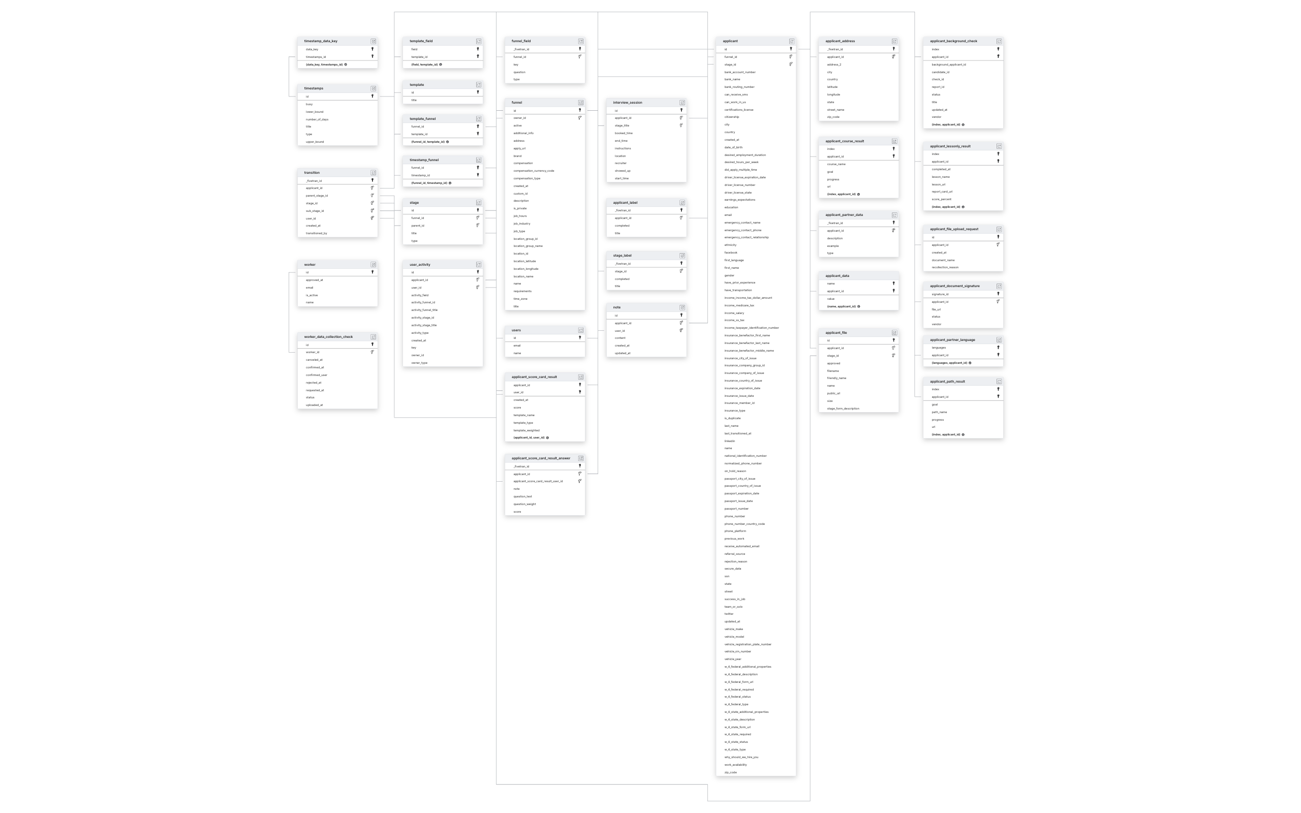 To capture new records, we incrementally sync the APPLICANT and USER_ACTIVITY tables and their child tables.