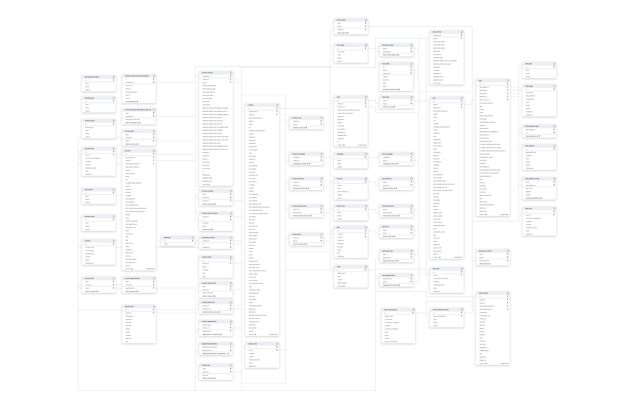 | Custom data | check | ACCOUNT, CONTACT, DEAL, LEAD, NOTE, and SALES_ACTIVITY tables. |