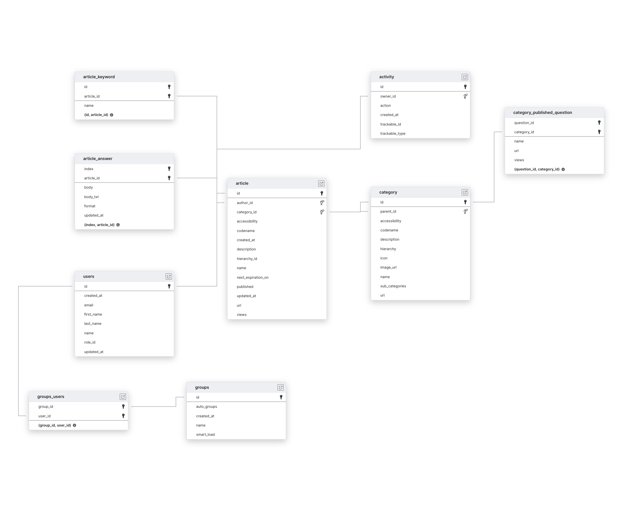 Explore Helpjuice schema ERD