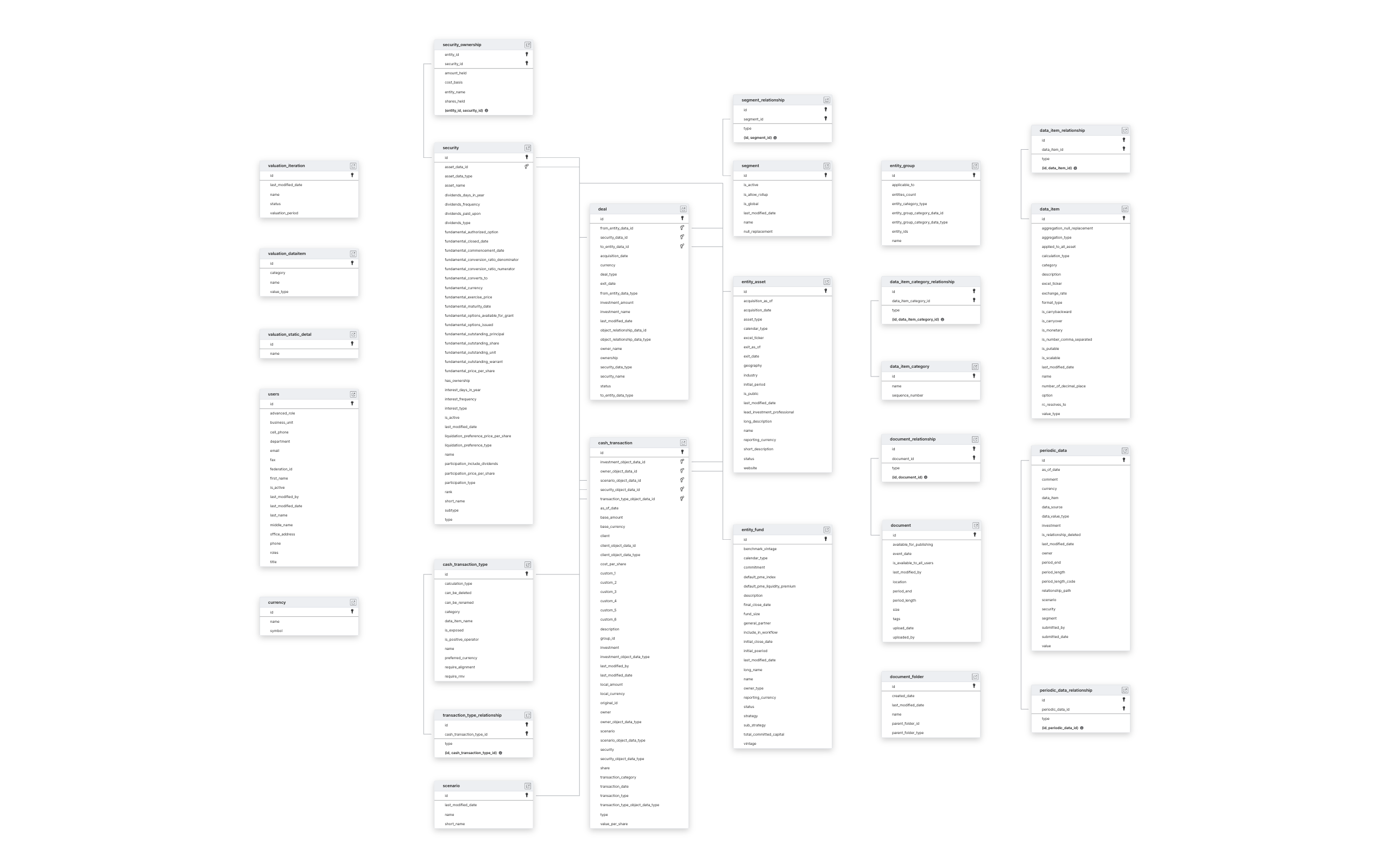 CASH_TRANSACTION_TYPECURRENCYDATA_ITEM_CATEGORYDOCUMENT_FOLDERENTITY_GROUPSCENARIOSEGMENTUSERSVALUATION_DATAITEMVALUATION_ITERATIONVALUATION_STATIC_DETAL