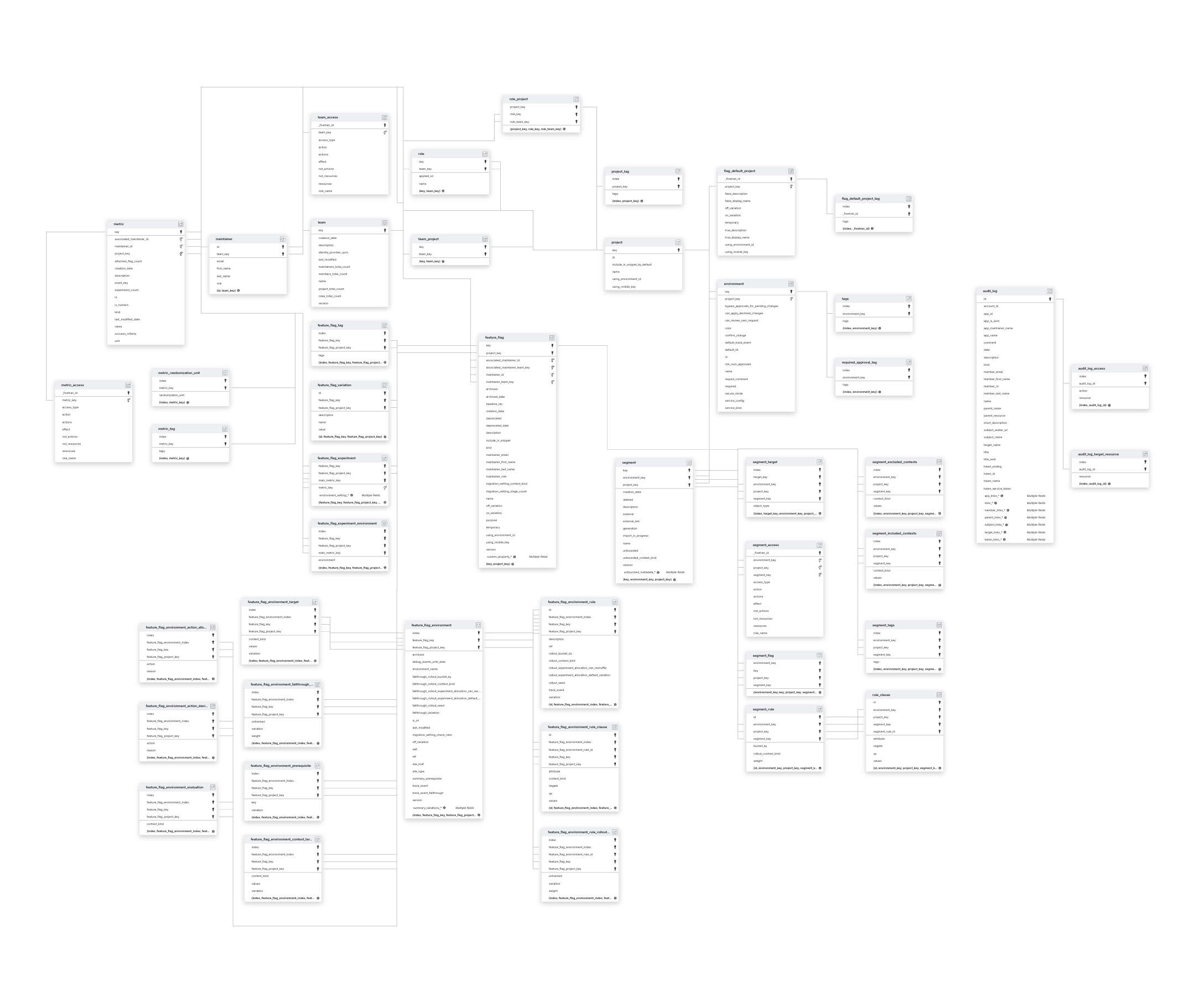| Capture deletes | check | ENVIRONMENT, FEATURE_FLAG, FLAG_DEFAULT_PROJECT, METRIC, PROJECT, SEGMENT, and TEAM tables. |