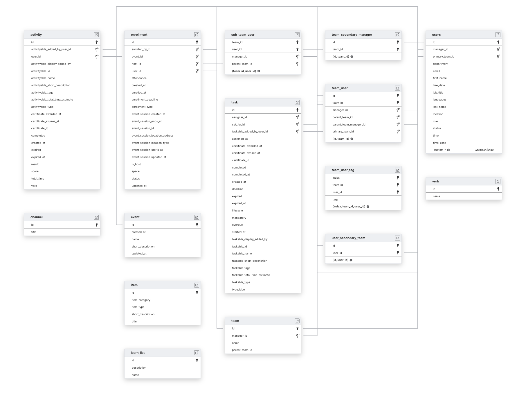 Explore Learn Amp schema ERD