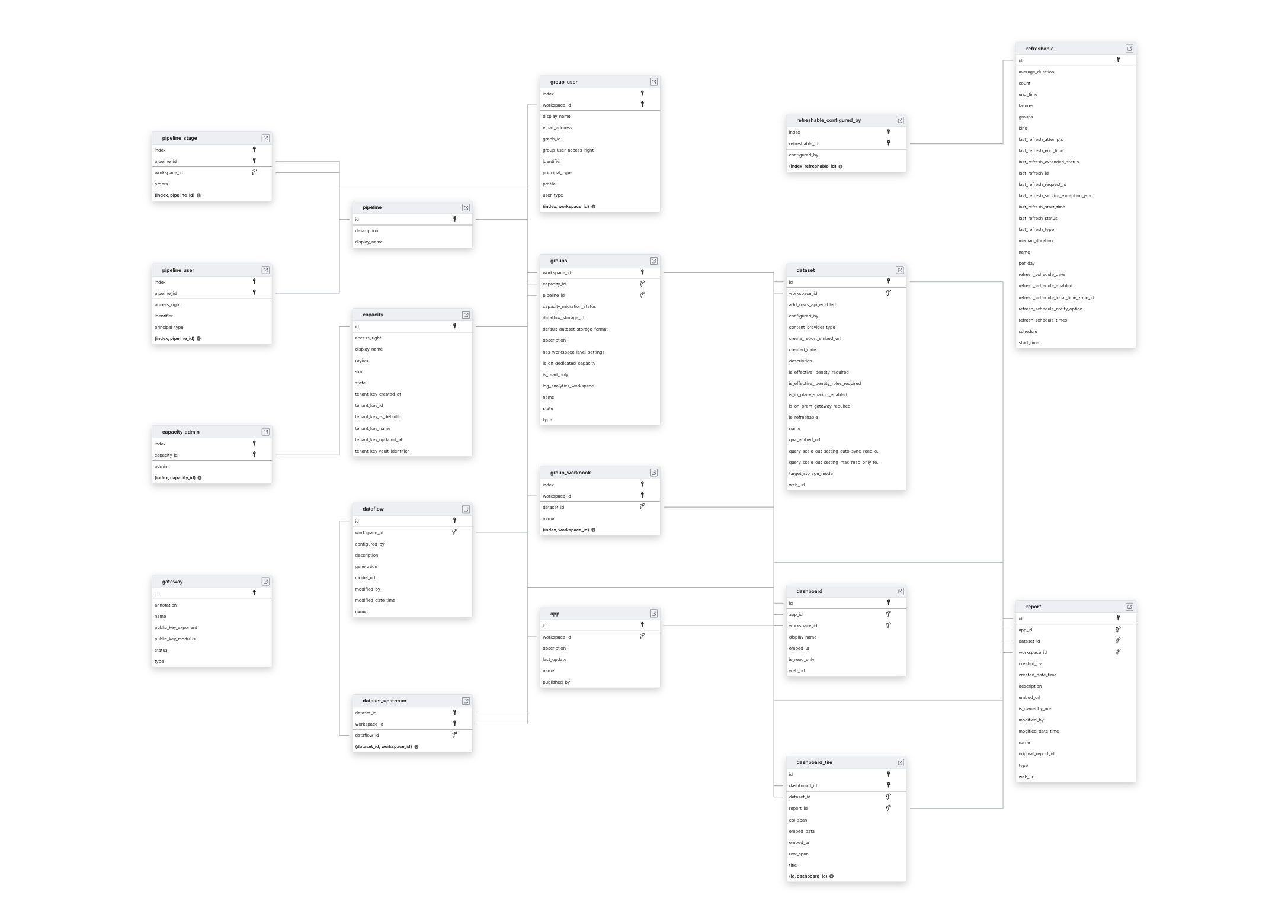 | Capture deletes | check | APP, DATAFLOW, DASHBOARD, GATEWAY, GROUPS, and PIPELINE tables |