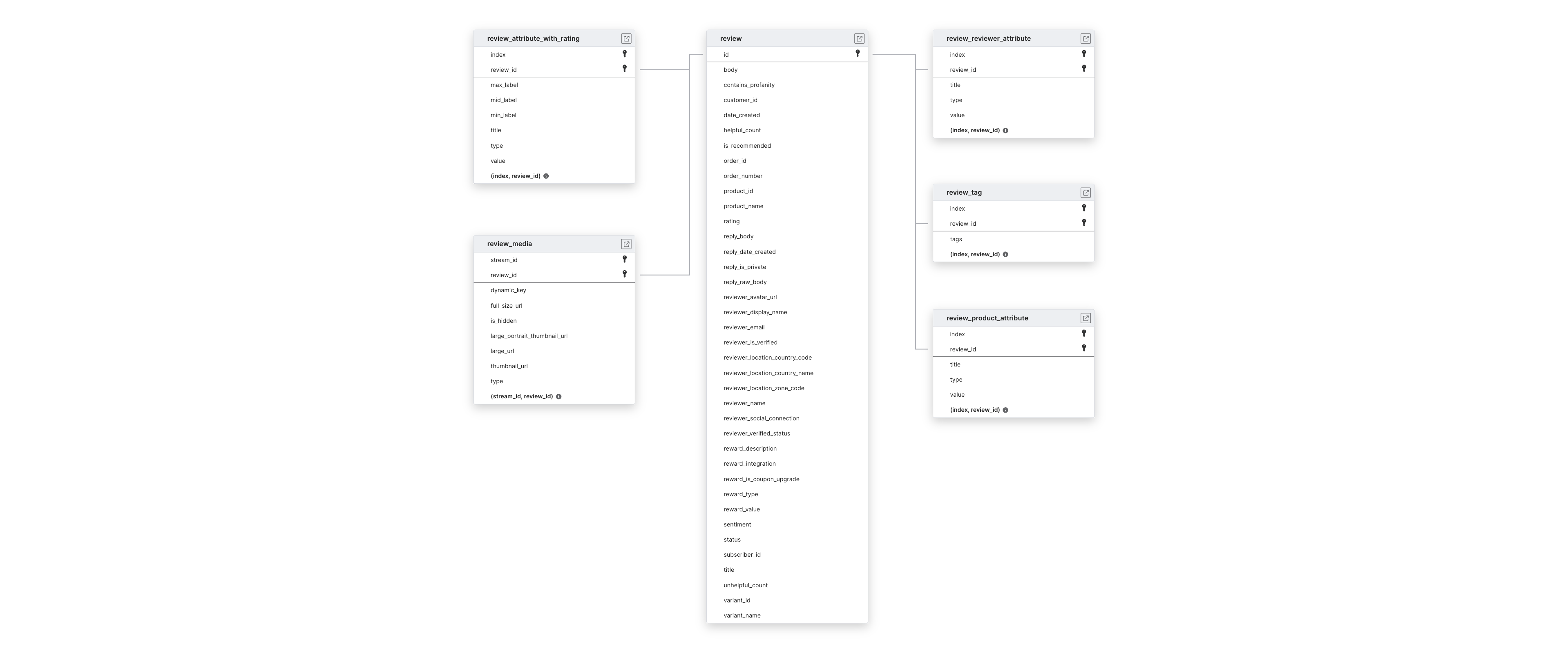 To capture new records, we incrementally sync the REVIEW table and its child tables.