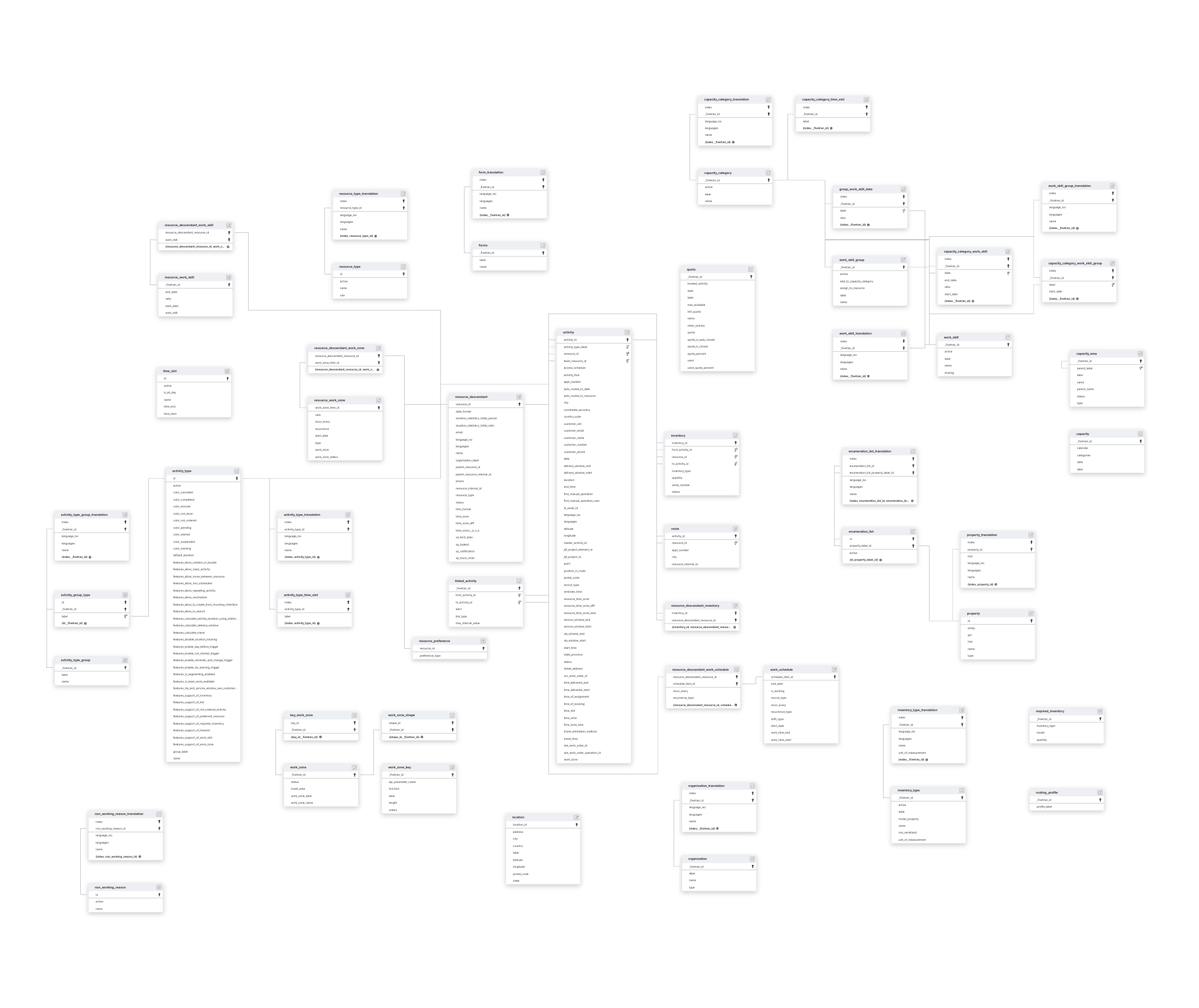 ACTIVITYCAPACITYRESOURCE_WORKSKILLRESOURCE_WORKZONEROUTEQUOTAWORK_SCHEDULE