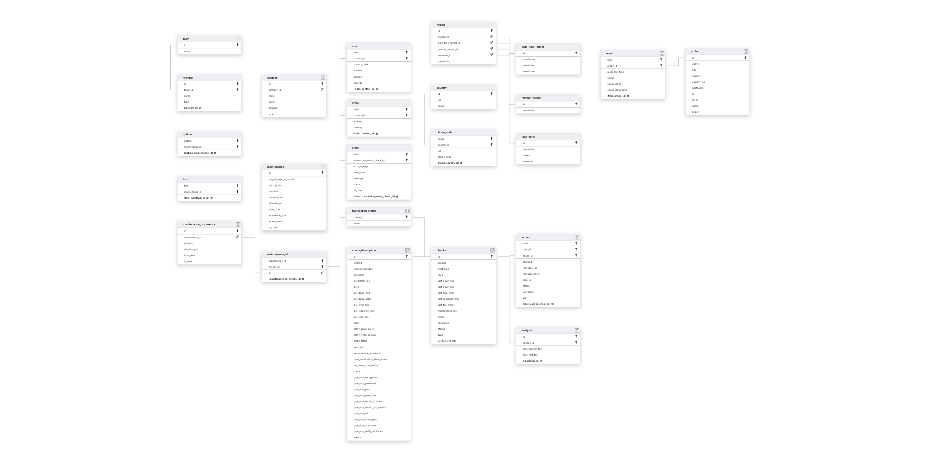 Explore Pingdom schema ERD