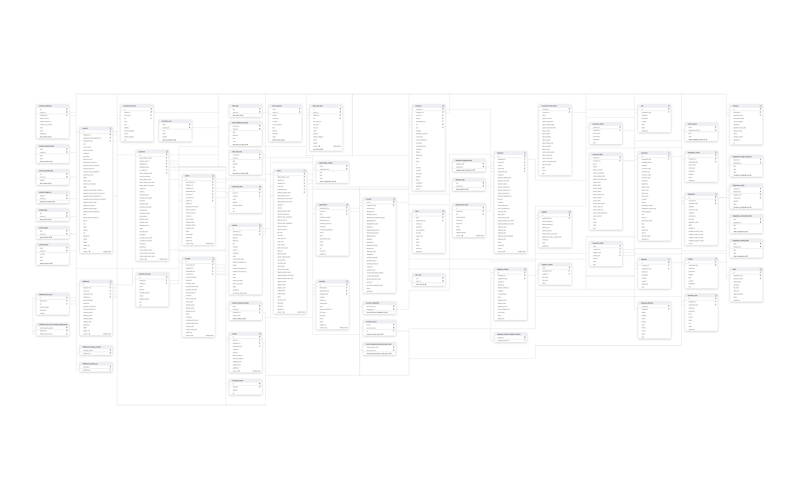 ACCOUNTARRIVALCONNECTORCUSTOMERFULFILLMENTINTEGRATION_ACTIONINTEGRATIONINVENTORYINVENTORY_RULELABELLOCATIONMAPPINGORDERORGANIZATIONPRODUCTPURCHASERECEIPTROLEROUTINGSHIPMENTSHIPPING_METHODSUPPLIERTRANSFERTRACKINGUSER