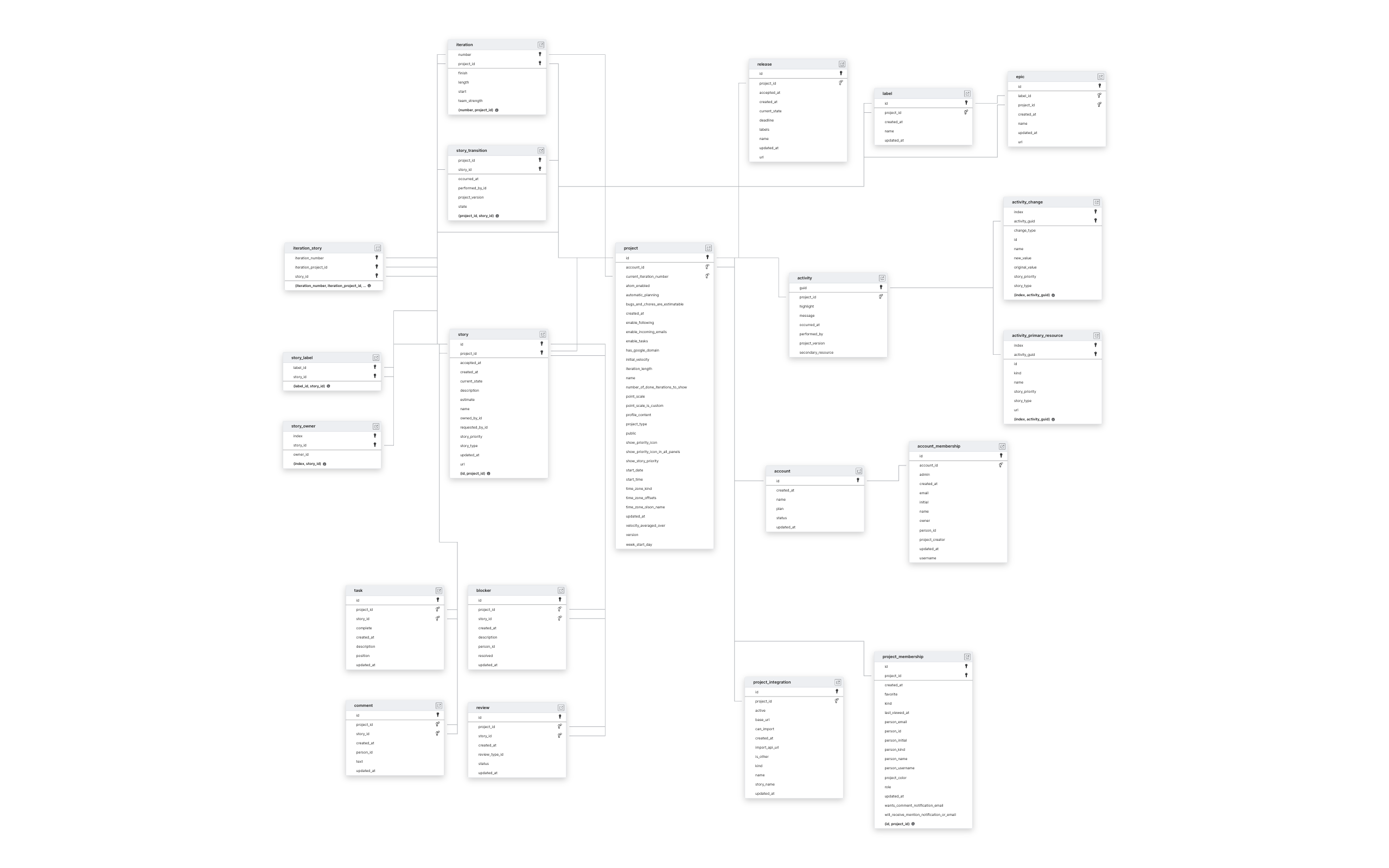 Explore Pivotal Tracker schema ERD
