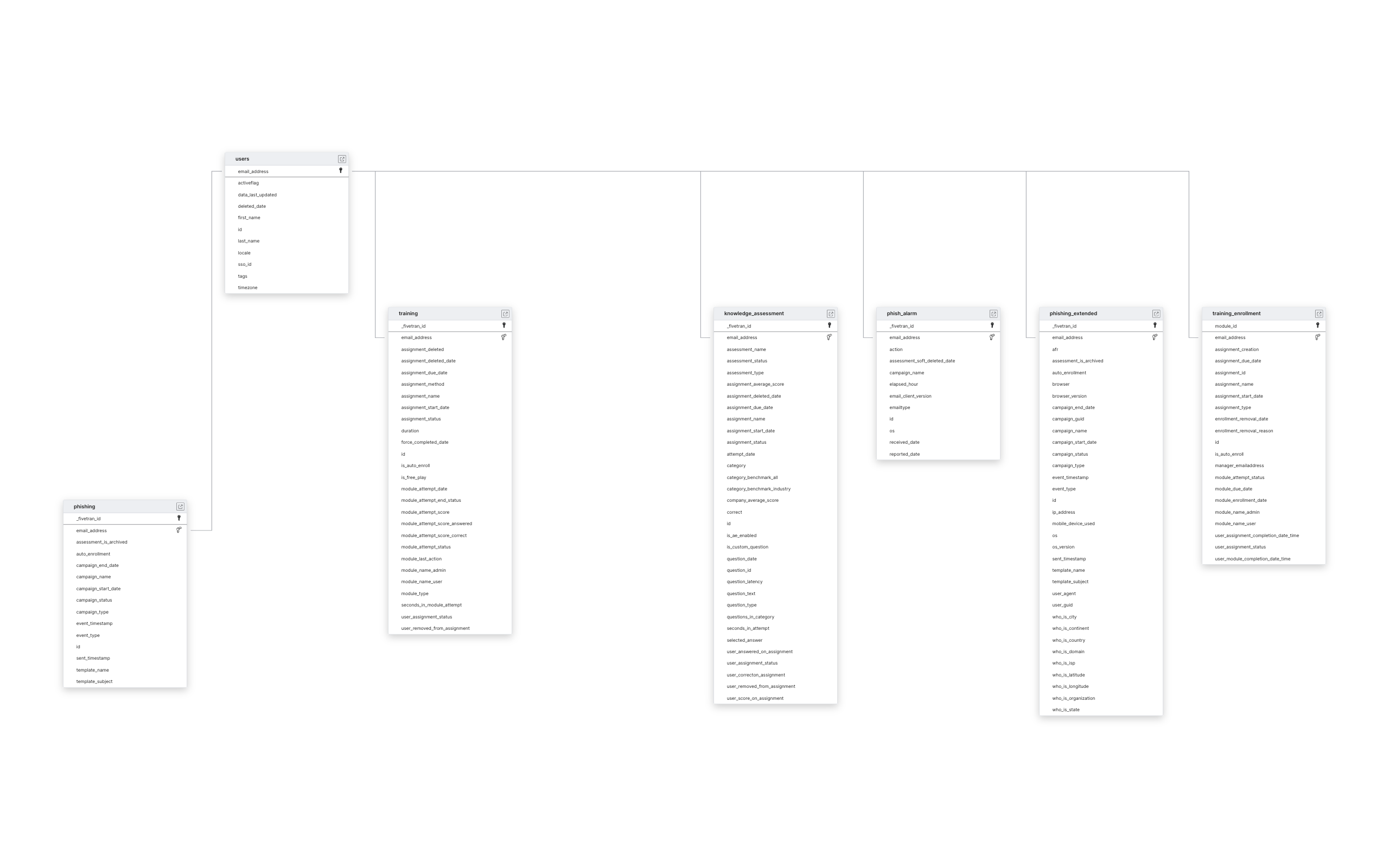 KNOWLEDGE_ASSESSMENTPHISH_ALARMPHISHINGPHISHING_EXTENDEDTRAININGTRAINING_ENROLLMENTUSERS