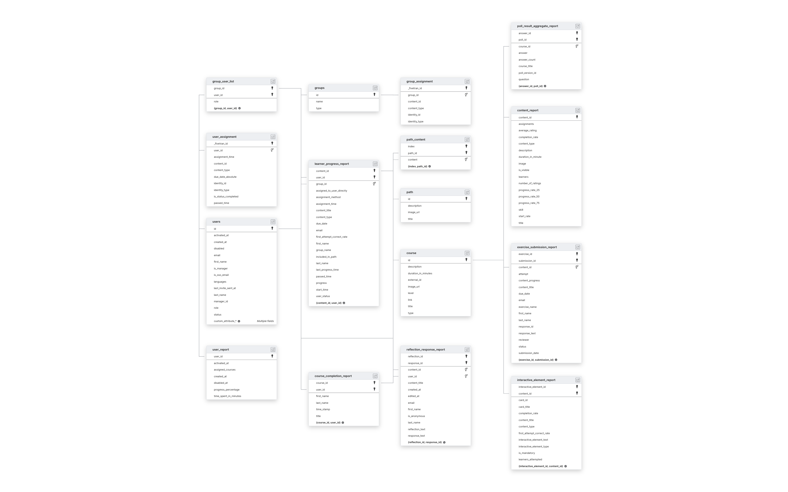 We re-import the following tables and their child during every sync to capture updates and deletes: