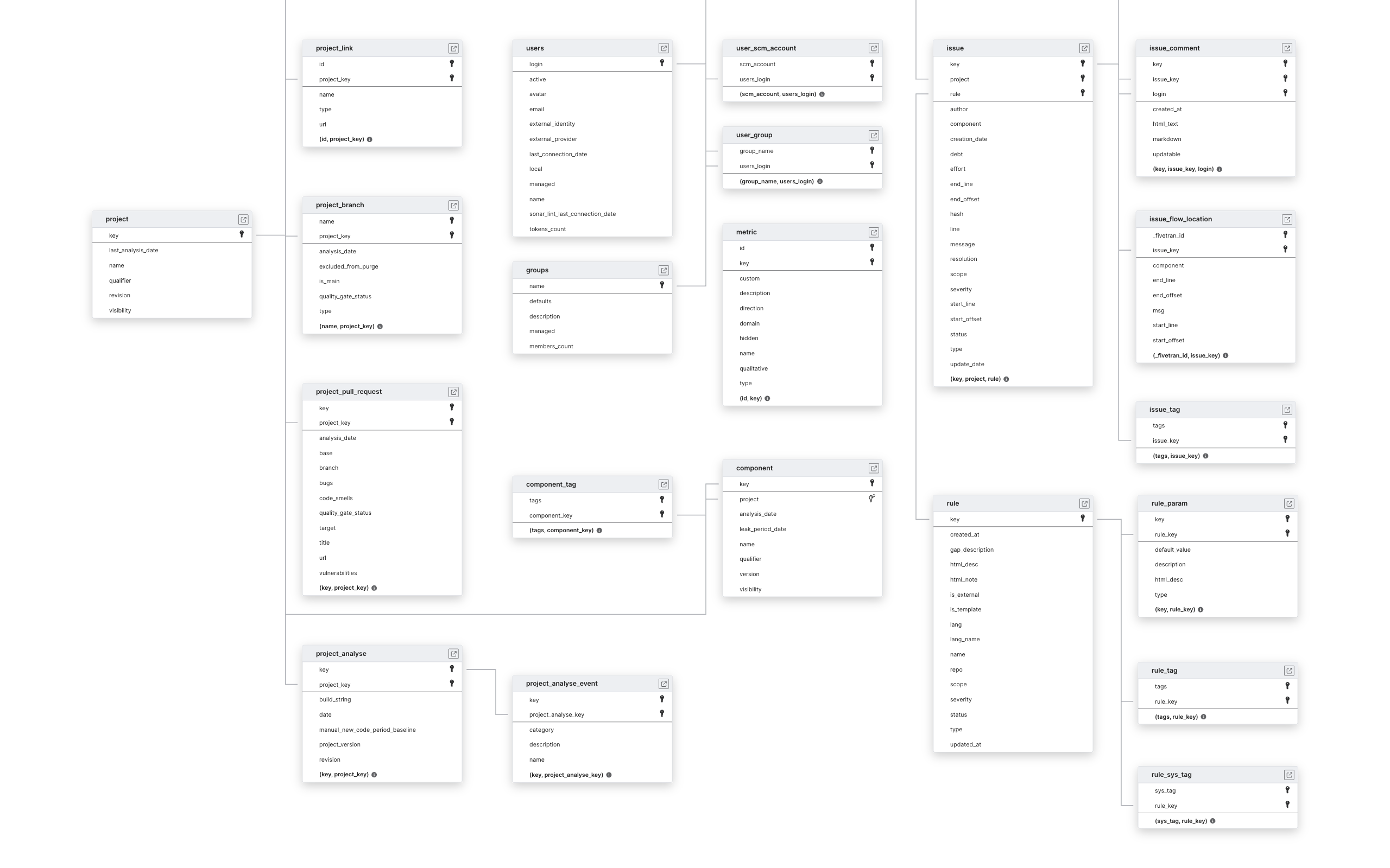 Explore SonarQube schema ERD